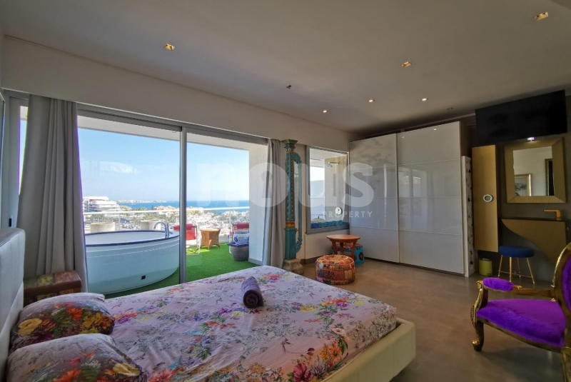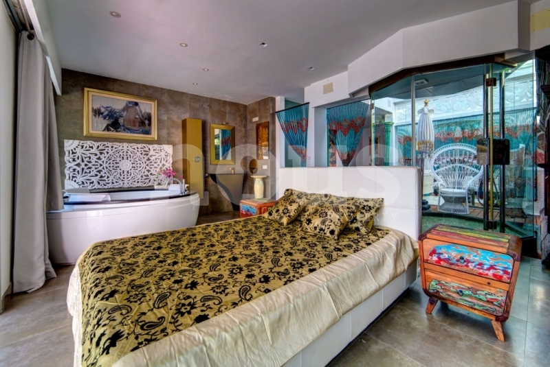 Впечатляващ мансарден дуплекс в будистки стил. Разполага с 3 отворени концептуални стаи, 2 от които са спални.
