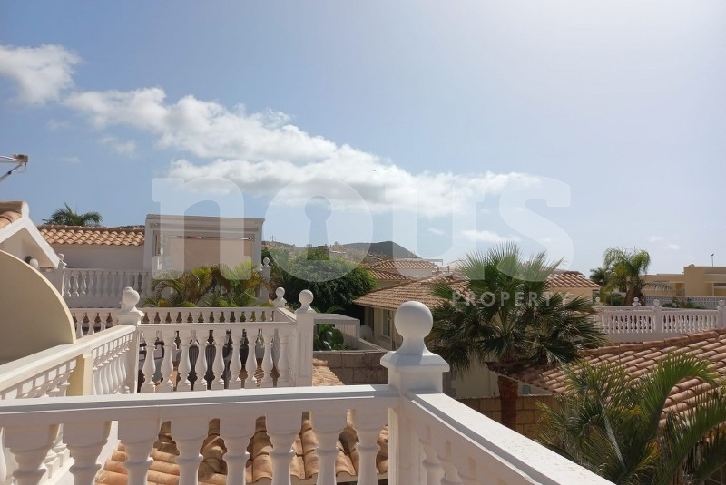 Nous Property има удоволствието да предложи за продажба вила близнак с 3 спални в популярното село Палм Мар. Имотът има общо външно пространство от 154 м2, разделено на 3 големи слънчеви тераси, от които 1 тераса има невероятна гледка към морето , океан. . Вилата е разделена на 4 етажа, като на долния етаж има 2 спални с вградени гардероби и баня с душ. На приземния етаж има още една много просторна спалня с баня с голяма вана. Има открит паркинг за 3 автомобила, частен басейн със солариум. Главният вход на вилата е чрез стъпала, които водят директно към всекидневната с трапезария и отворен план, напълно оборудвана кухня. Имотът ще се продава напълно обзаведен. Вилата е с нова дограма навсякъде и има много добра СОТ. На покрива е монтиран бойлер. Без обществени такси. Свържете се с нас днес за пълни подробности и уговорка за преглед.