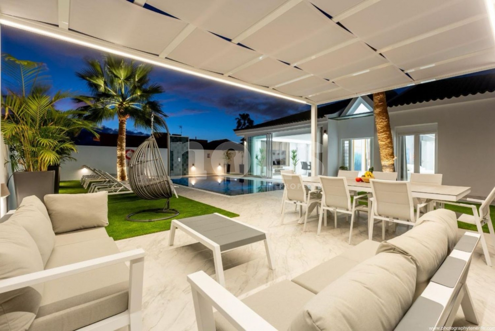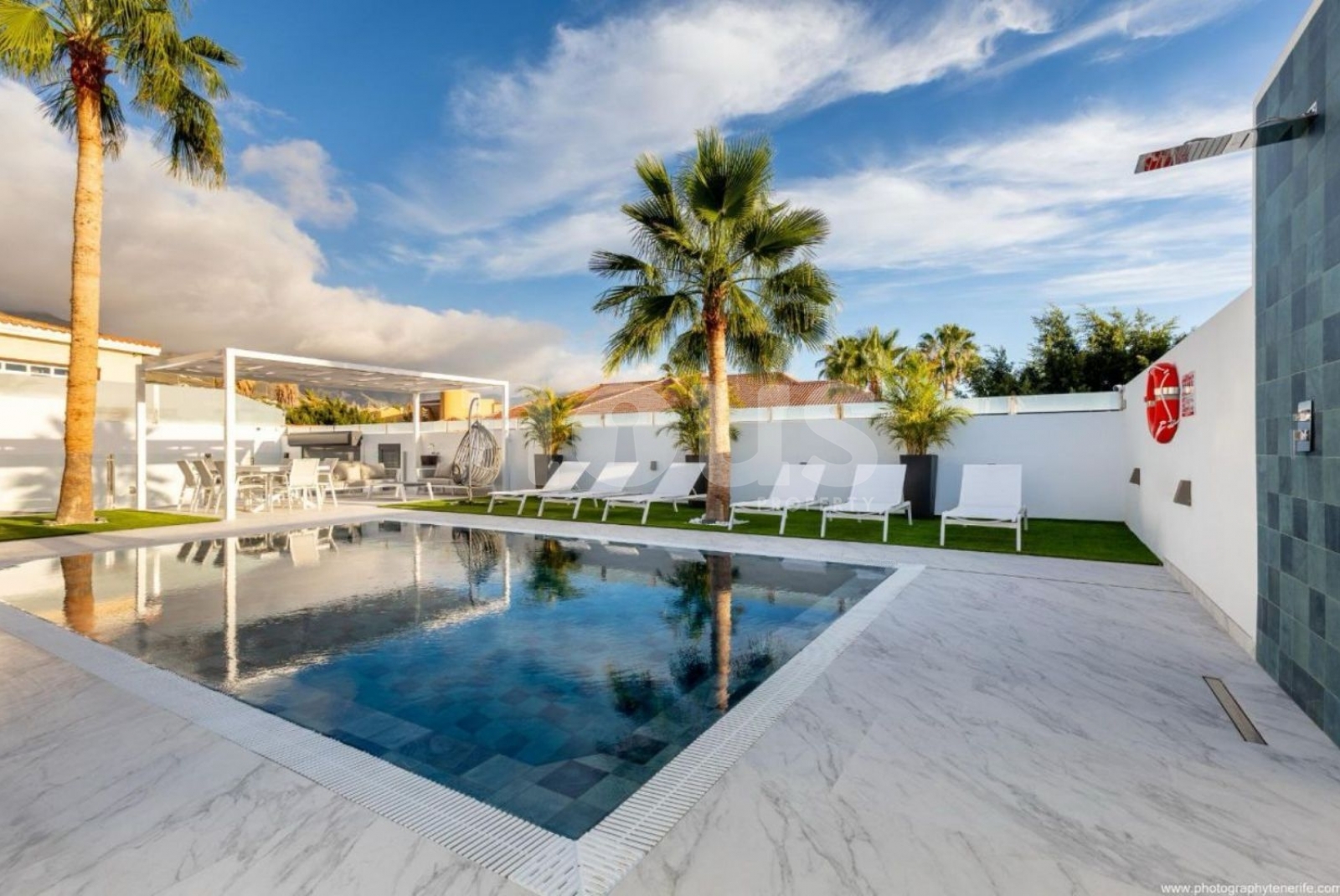Mit 230 m2 auf einem 530 m2 großen Grundstück verfügt diese Villa über 4 helle Schlafzimmer, 4 Badezimmer und eine große Terrasse, um die Sonne zu genießen. Darüber hinaus ist ein Garagenplatz vorhanden. Es wurde 2023 erbaut und bietet Gartenbereiche, einen beheizten Pool, einen Ruhebereich, eine Außenküche und einen Fitnessbereich mit Fitnessraum, Billardtisch und Tischtennis.
