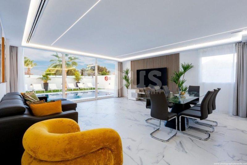 Entdecken Sie diese charmante Villa in Adeje, Callao Salvaje. Eine zum Wohnen oder Mieten bereite Residenz, die mit Blick auf Luxus und Modernität gestaltet wurde. Diese avantgardistische Villa bietet einen exklusiven Raum für diejenigen, die maximalen Komfort und Privatsphäre suchen.