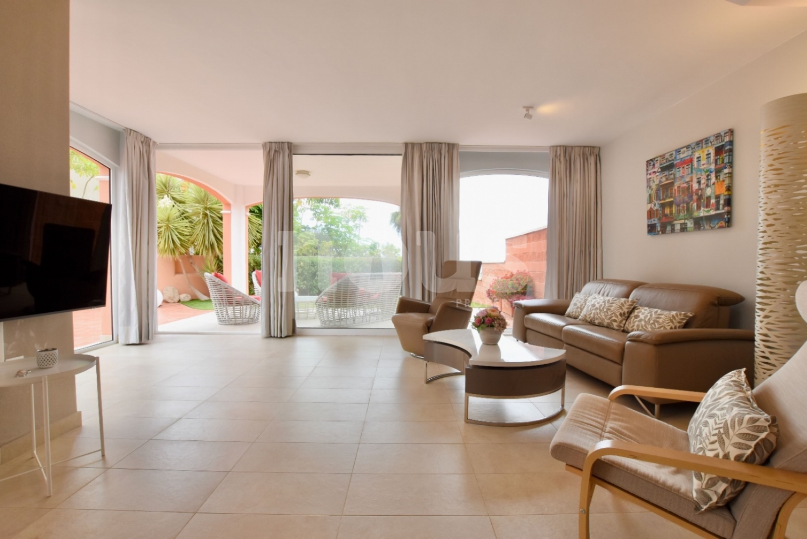 Die Außenräume bieten eine breite private Terrasse mit einem Grillbereich, das sehr gut gepflegt ist, Meer mit Meerblick und ein Dach -Solarium mit Panoramablick auf den Ozean und die Golfplätze.