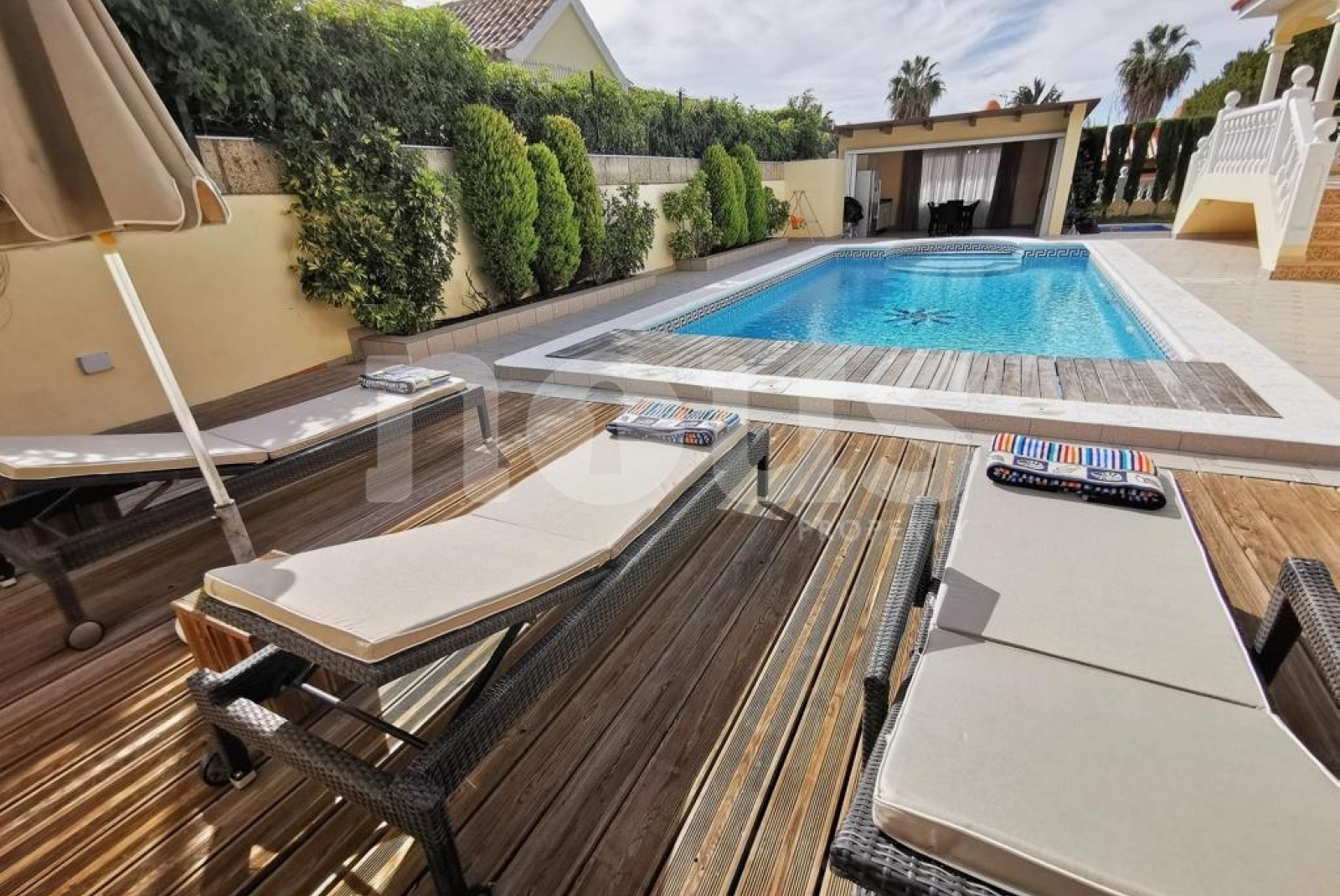 Klimaanlage Einbauschränke Gegenstrom im Pool Backofen Internet Privater Garten Waschmaschine Wäscherei Mikrowelle innerer Patio Fernseher Abstellkrauam Videoüberwachung Videoeintrag