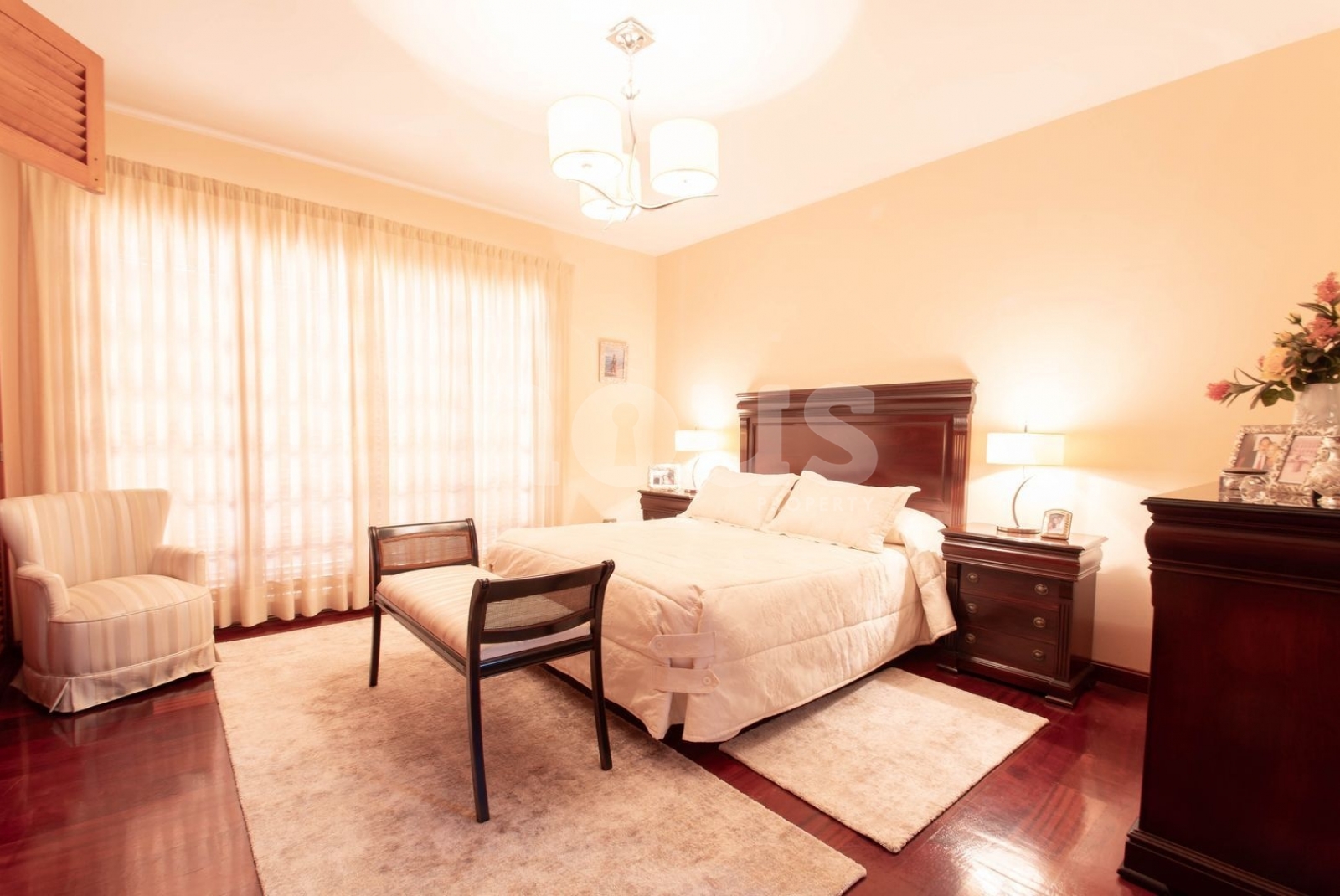 In der unteren Etage bietet eine große 200 m² große Garage mit direktem Zugang zur Straße das Abstellen mehrerer Fahrzeuge und verfügt außerdem über einen geräumigen Abstellraum.
