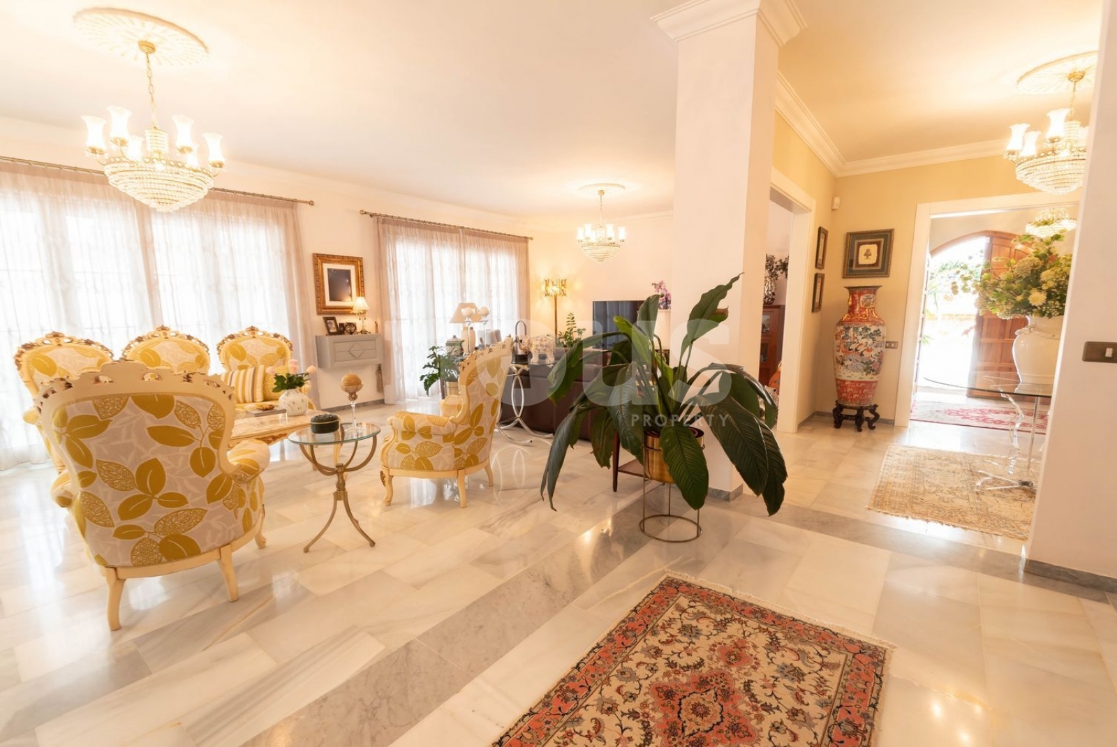 Die Hauptetage zeichnet sich durch eine luxuriöse Eingangshalle, zwei Wohnzimmer, ein großes Esszimmer und eine moderne Küche aus, alle mit Meerblick und Zugang zu teilweise überdachten Terrassen.