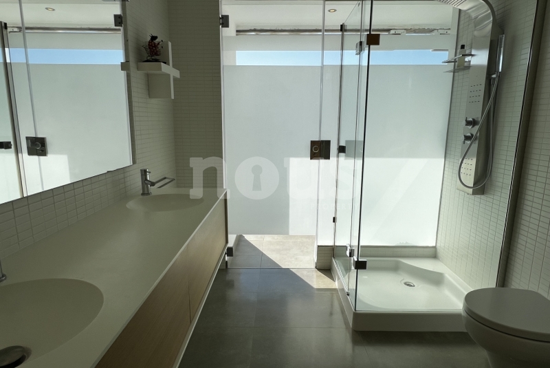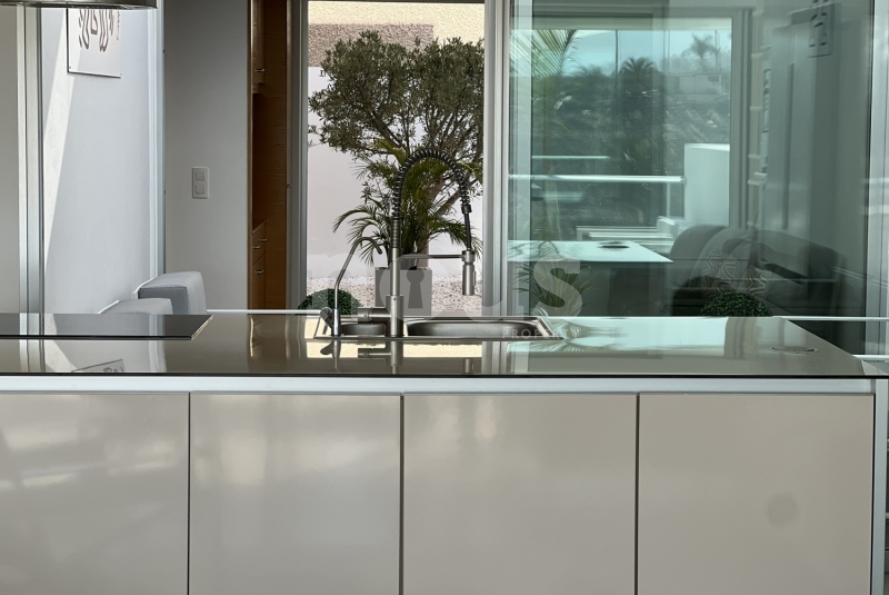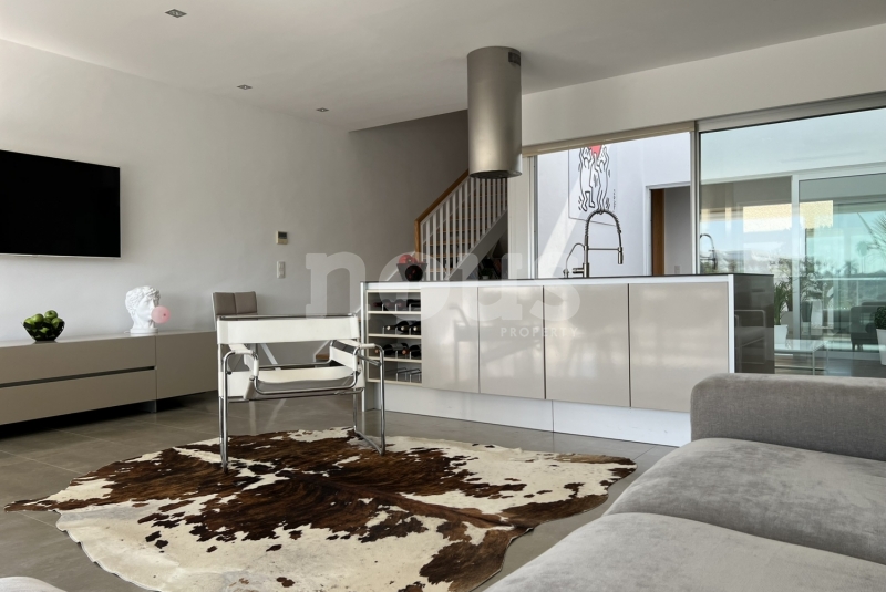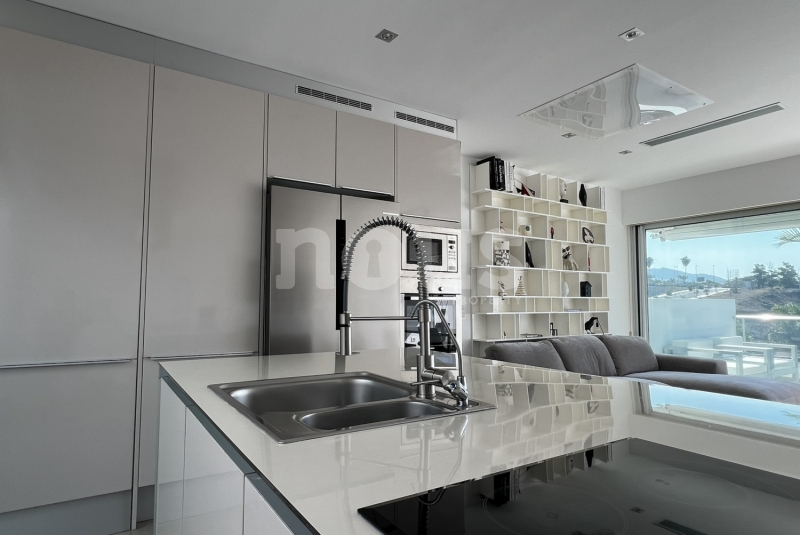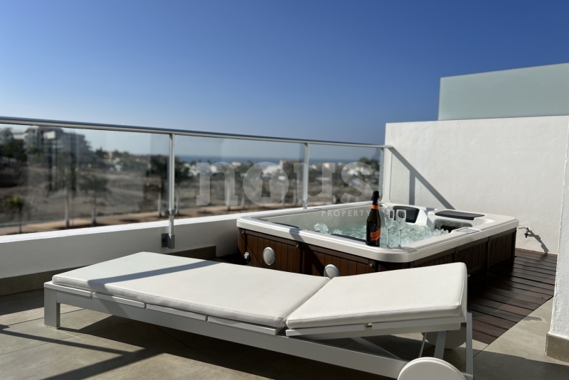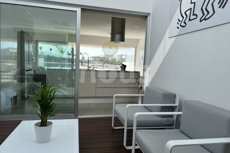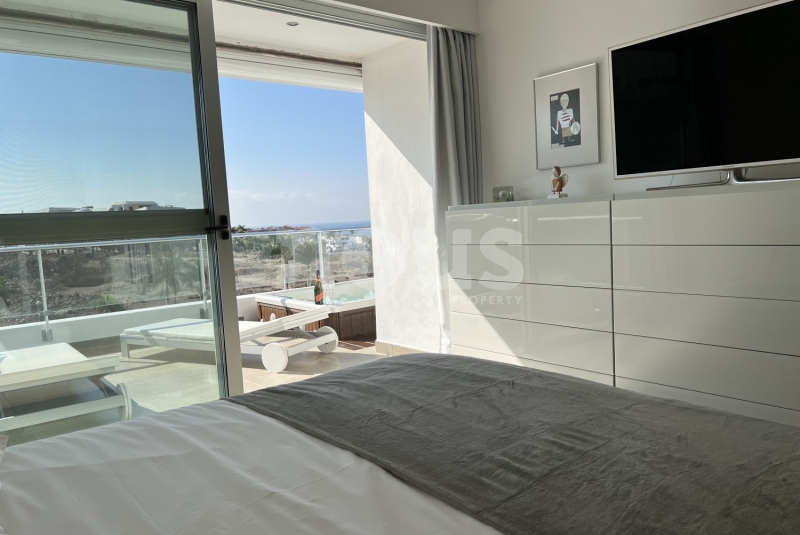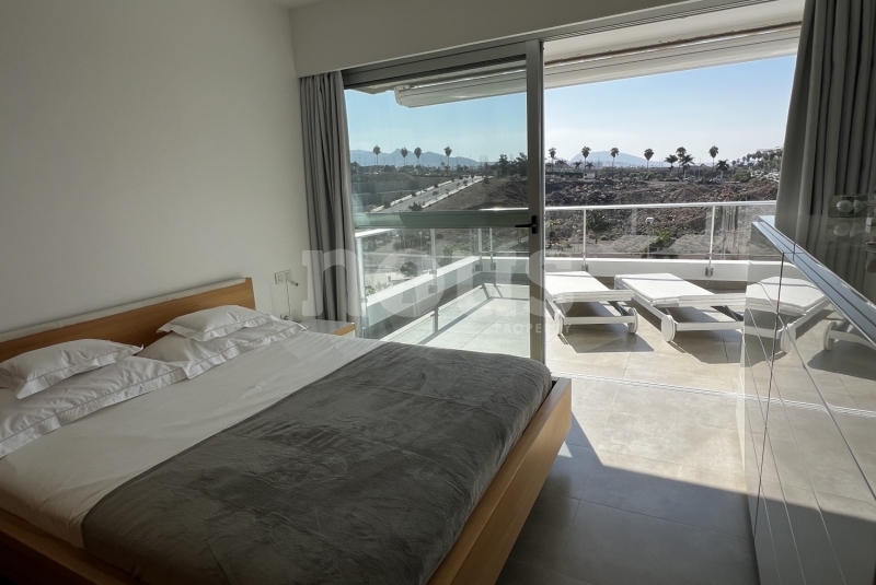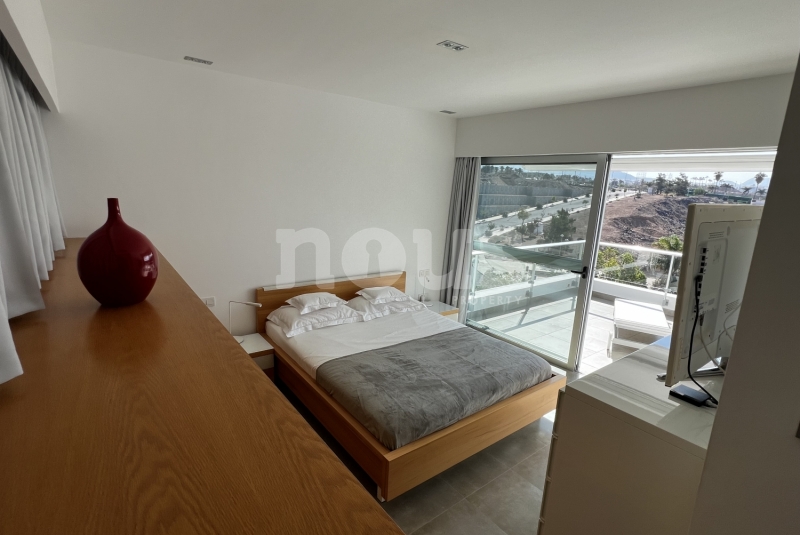 Exclusive furnished apartment of 100 m² plus 56 m² of terraces, including an upper terrace with jacuzzi. Located on the 1st floor of the building next to the pool, it offers sea views over the town of La Caleta and mountain views. This apartment has 3 bedrooms and 2 bathrooms, as well as a spacious living room with an open kitchen. Garage space and closed storage room of 12 m² are included. Tours available upon request. Sold without furniture.