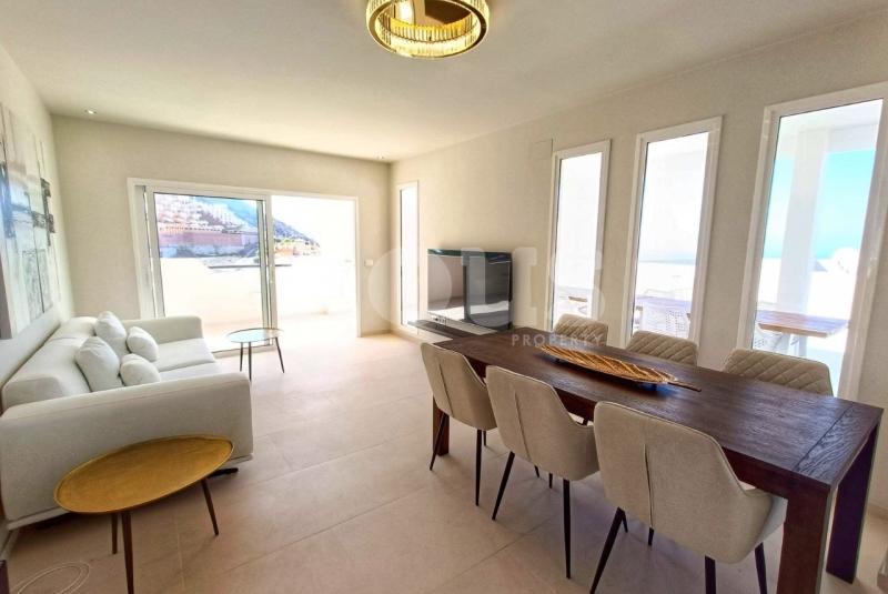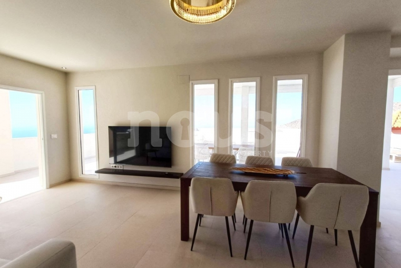 American kitchen open to living room. The main bedroom has direct access to the terrace and offers panoramic views to the sea and the mountain.