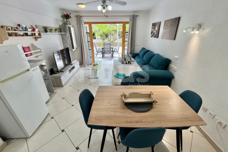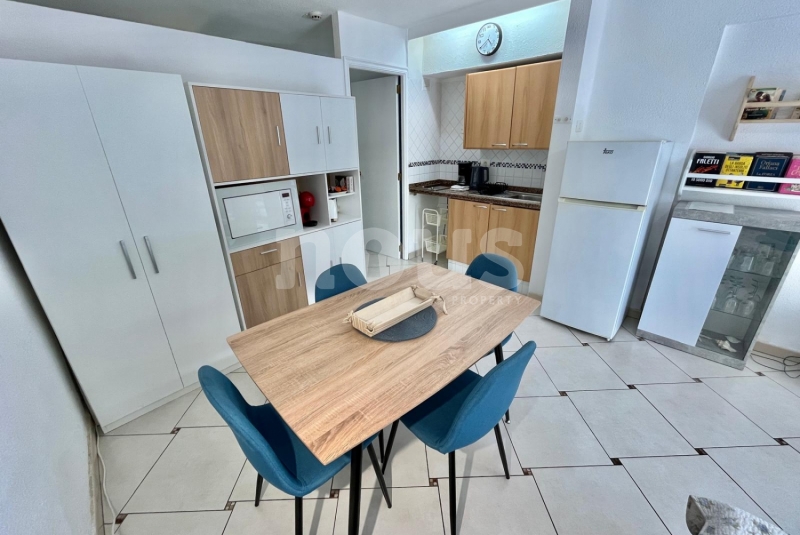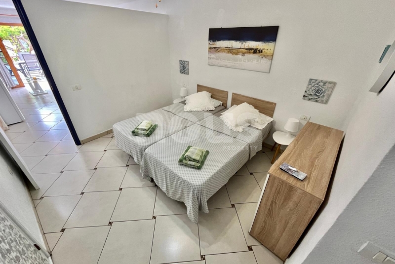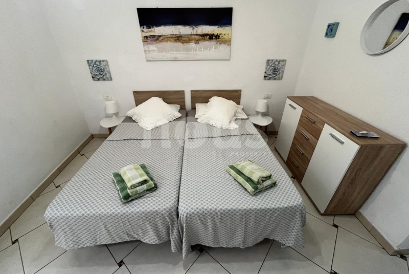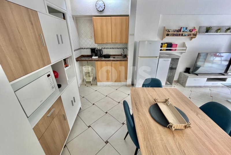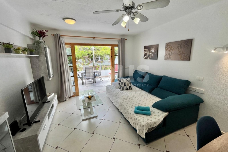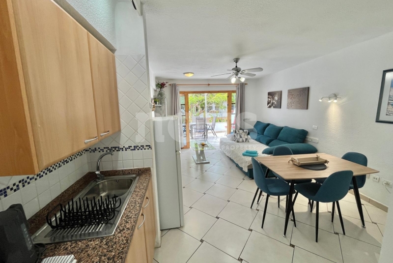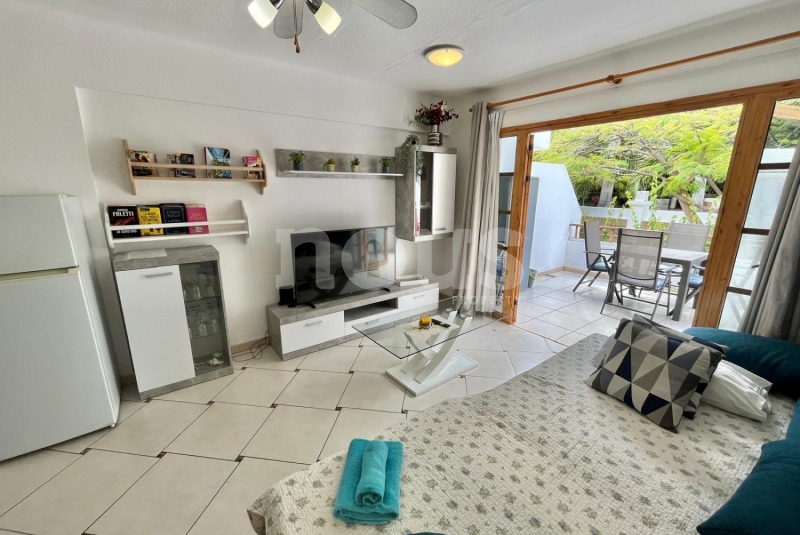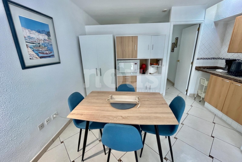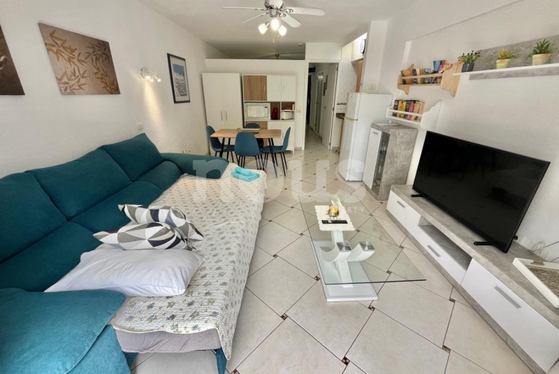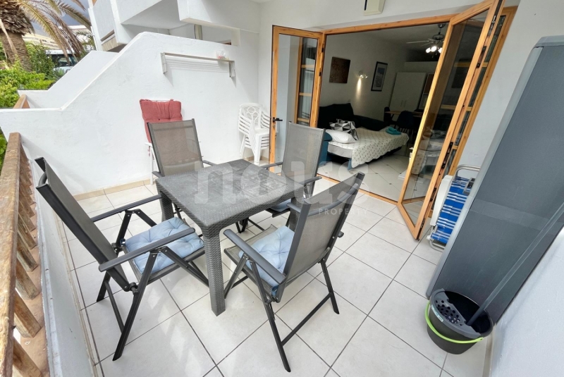 Studio for sale in Los Geranios, Costa Adeje, Tenerife - Investment opportunity! This cozy studio in Los Geranios, located in San Eugenio, is perfect for both living and vacation rentals. The studio is located on the ground floor and has a comfortable layout, including a separate seating area and a sofa bed. With 37 m² interior, it offers an ideal space to enjoy tranquility in a complex with a heated pool and reception area. Located in one of the most desirable areas of Puerto Colón, a few steps from the beach and the San Eugenio shopping center, this property not only offers comfort, but also an excellent investment opportunity. The 10.80 m² balcony provides the perfect place to enjoy the views and sunny climate of Costa Adeje. With community fees of 140 euros and an IBI of 294 euros per year, it is a unique opportunity to acquire a property in one of the most exclusive areas of Tenerife.