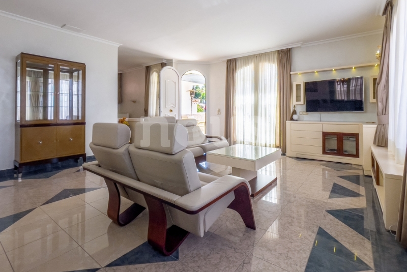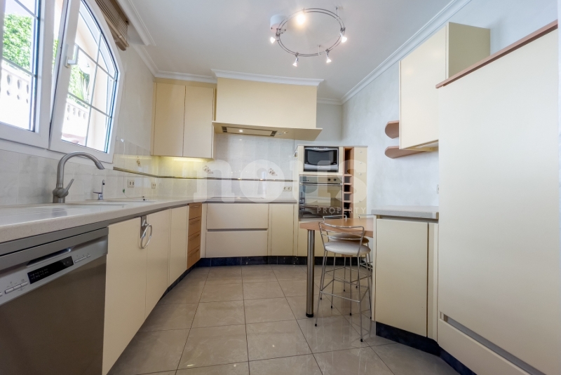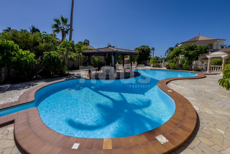 We present a luxurious Front Line villa in the exclusive Parque la Duquesa complex, located in one of the most privileged areas of Tenerife: Bahía del Duque. On the main floor, you will find a spacious fully furnished living room, a separate and fully equipped kitchen, a toilet and a huge terrace with barbecue, as well as a small garden with partial views of the ocean and the mountains.