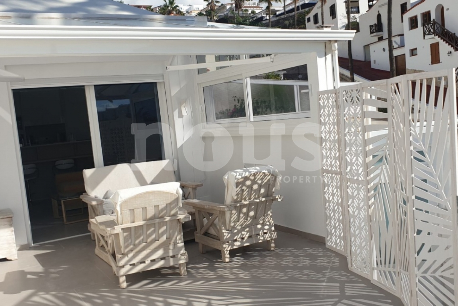 Se vende un chalet pareada en el complejo Holiday Valley en San Eugenio con 1 dormitorio y 1 baño completamente renovado y amueblado. La propiedad es moderna, luminosa con una terraza grande con vista mar. El dormitorio consta de un gran armario empotrado, con aire acondicionado, televisión smart etc. El baño tiene una ducha grande de lluvia. La cocina está super moderna con todas las extras que se puede imaginar. El salón con sofá cama tiene una area de comer y de leer o para utilizar como una pequeña oficina. Desde la terraza semi cubierta hay una vista espectacular hacia el mar. La propiedad tiene trastero una extra habitación para huespedes, piscina comunitaria y un acceso sin barreras.