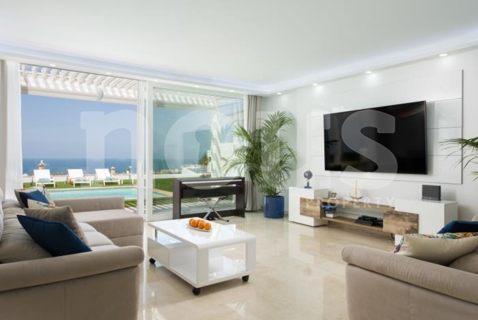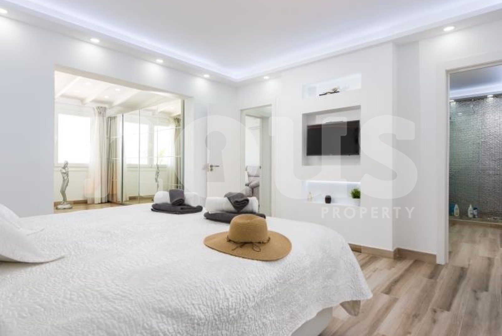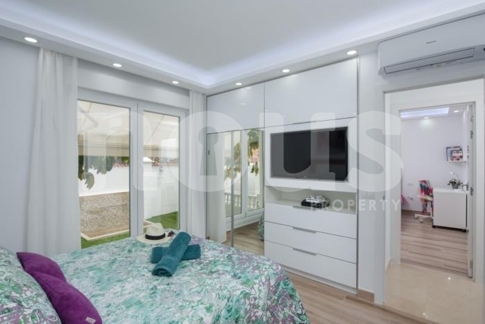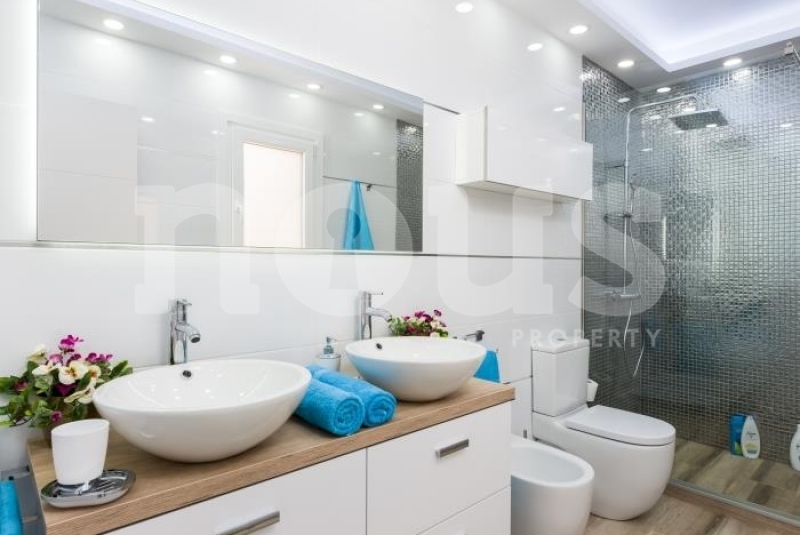 Exquisitely furnished, this bright property offers sea views from almost every air-conditioned room. Enjoy serenity in your private heated saltwater pool, outdoor hot shower, table tennis and barbecue area. The villa features a private gym, table football, and a relaxing double hot tub on the ground floor, along with two bedrooms and two private bathrooms.