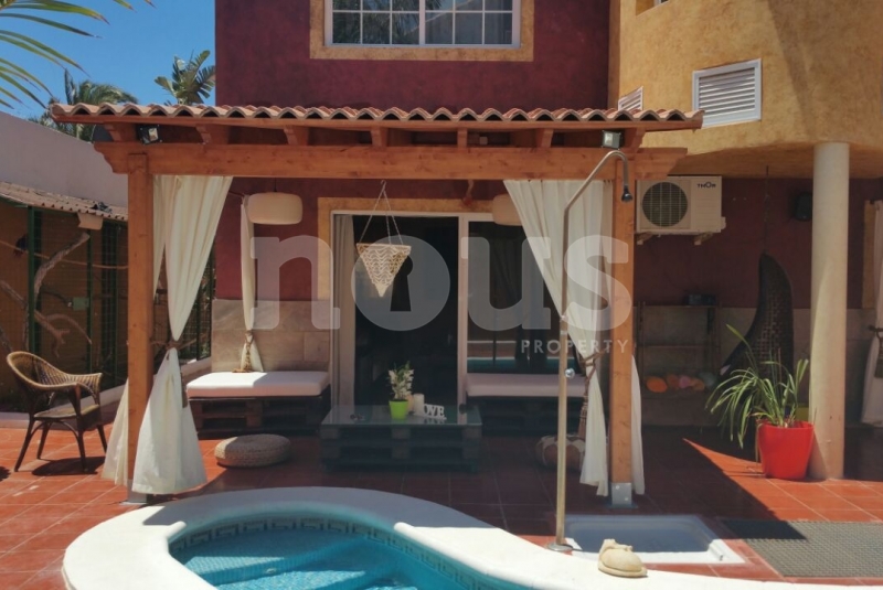 This villa is perfect for those seeking tranquility and luxury. Located in the quiet area of Costa del Silencio, this property offers an excellent opportunity to enjoy the best facilities and amenities. The villa has 3 bedrooms, 3 bathrooms, a separate kitchen, a large private garden with a swimming pool and a private garage. The materials used are top quality and the chalet is fully equipped with air conditioning, fitted wardrobes, oven, internet, washing machine, laundry, microwave, armored doors, parquet flooring, storage room, video intercom and Jacuzzi.