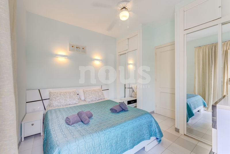 Descripción detallada del apartamento: dormitorio con cama doble y TV, baño con bañera, cocina combinada con sala de estar, equipada con electrodomésticos: estufa, horno, tetera, microondas, frigorífico, lavavajillas. Hay utensilios para cocinar y comer. El salón tiene una mesa de comedor, sofá cama, TV. Terraza con muebles (mesa de comedor y sofá) con vista a la alberca. Hay un patio trasero amueblado.
