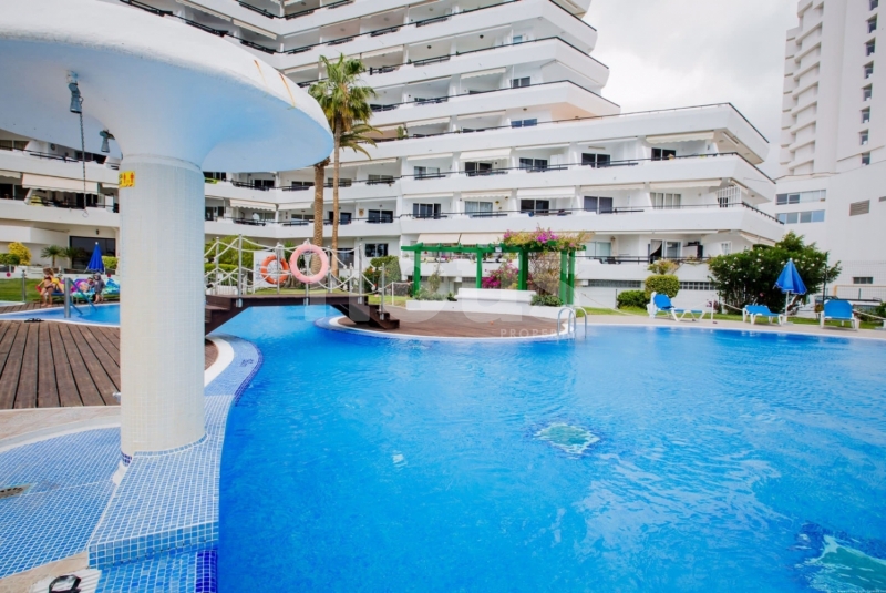 El piso consta de dos amplios dormitorios dobles, un gran salón comedor con cocina americana y un baño. Desde el salón hay acceso directo a la soleada terraza con vistas laterales al océano Atlántico. El apreciado complejo ofrece a sus residentes una experiencia de vida excepcional. Con una piscina comunitaria para disfrutar y acceso directo al pintoresco paseo marítimo, este complejo brinda un estilo de vida relajado y confortable.