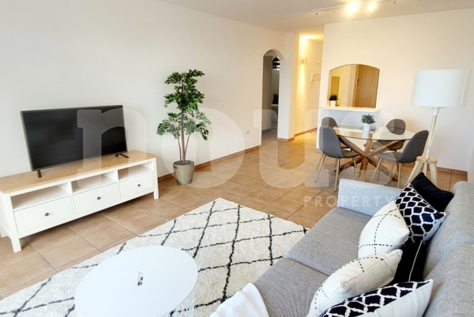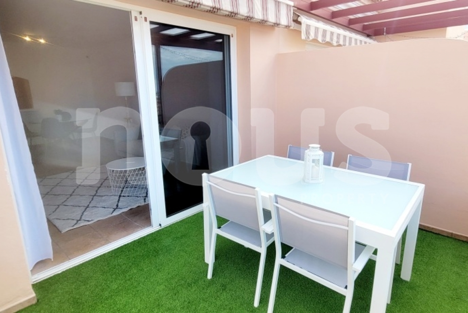 Muy bonito apartamento de 2 dormitorio1 baños, situado en la segunda y última planta de un complejo residencial muy bien cuidado, que se encuentra en la tranquila zona residencial del Madroñal, cerca de los centros comerciales gran Sur y Siam Mall y al lado del colegio privado internacional Costa Adeje. Dispone de cocina semi abierta al salón, completamente equipada y con solana para lavadora, plaza de garaje y trastero en el sótano. El complejo tiene piscina comunitaria, jardines y ascensores.