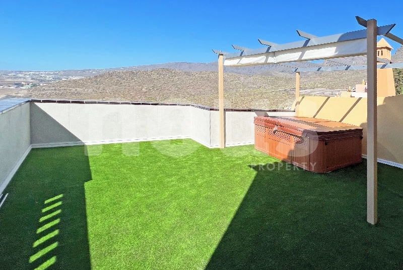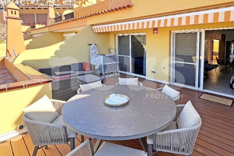 Se vende ático-dúplex en Roque del Conde, en el complejo Terrazas del Conde 2. El alquiler vacacional está permitido en este complejo. Este espacioso ático se encuentra en la última planta y tiene una superficie habitable de 80 m2, además de 2 terrazas con una superficie total de 70 m2, desde las cuales se pueden disfrutar de fantásticas vistas al mar, a las montañas y a la isla vecina La Gomera. El ático cuenta con un salón-comedor, una cocina americana, 2 dormitorios y 2 baños. Los amplios dormitorios ofrecen tranquilidad y comodidad. También puedes disfrutar del tiempo al aire libre y deleitarte con las impresionantes vistas. El complejo cuenta con ascensor y una piscina comunitaria. Roque del Conde es una zona tranquila y silenciosa con una infraestructura bien desarrollada. Además, se encuentra cerca de un gran centro comercial llamado 'Gran Sur', que ofrece cine, supermercado, restaurantes y tiendas. A poca distancia también se encuentra una escuela privada, canchas de tenis y un complejo deportivo. Además, la Playa de Fañabé está a solo 5 minutos de distancia.