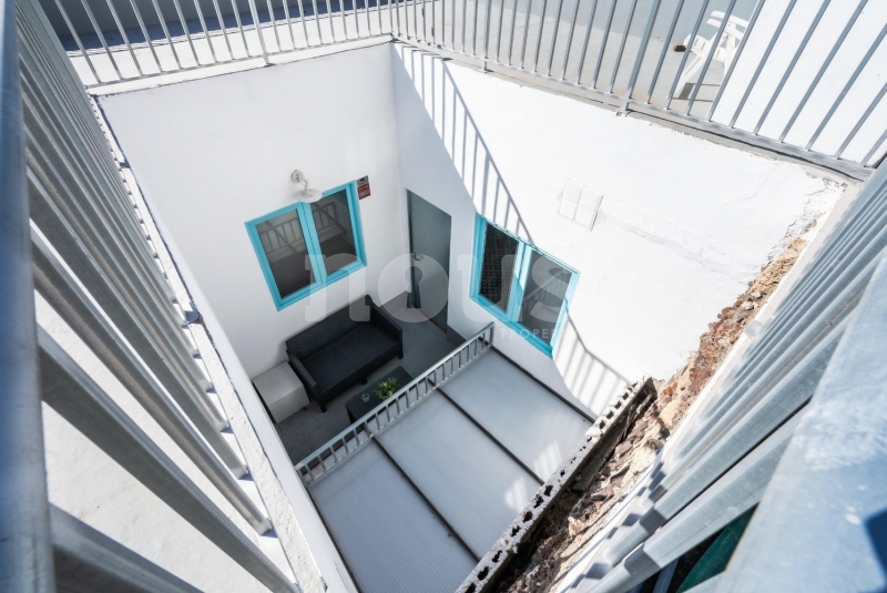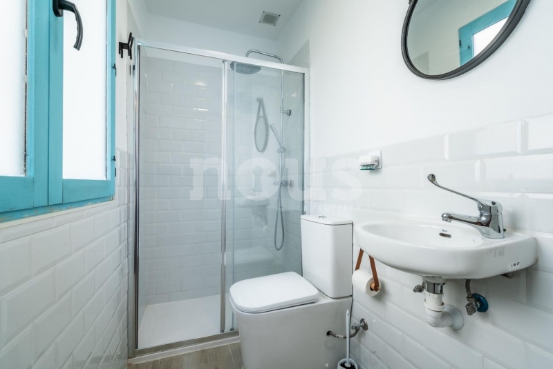 Subimos a la segunda planta y luego de una claraboya que hace entrar mucha luz tenemos 2 baños también completos, con plato de ducha y mampara de cristal, pasando por una habitación individual y a través del pasillo llegamos a otra de las hermosas cocinas que la casa tiene con salida a una acogedora zona chill out para disfrutar de tus cafés por la mañana o de un aperitivo con amigos un fin de semana.