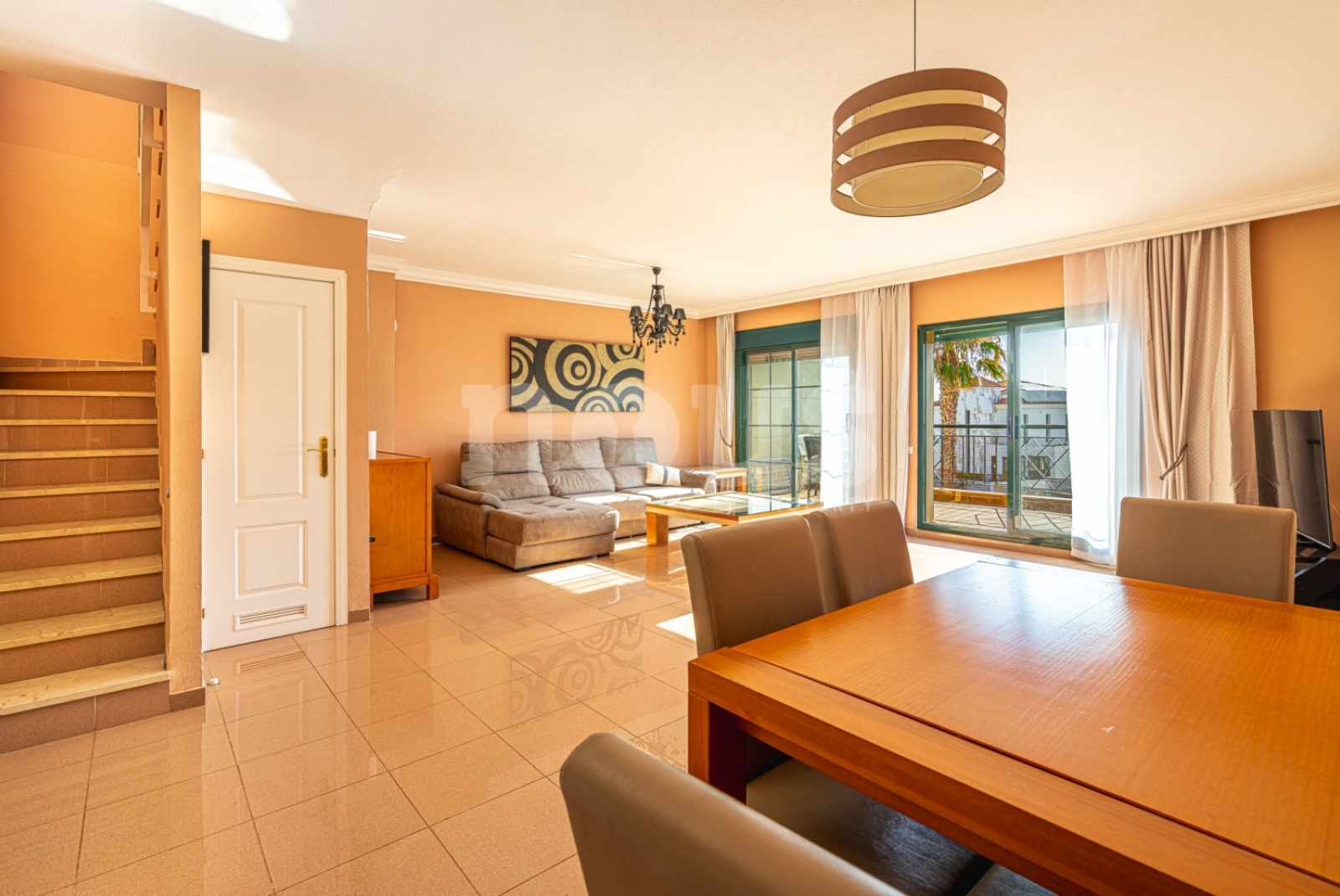 Salón-comedor amplio con acceso directo a una gran terraza con vistas despejadas