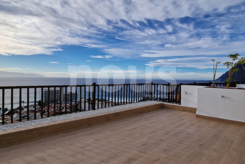 Estamos encantados de presentarles este maravilloso dúplex en una de las mejores ubicaciones de Los Gigantes. Esta propiedad ha sido completamente reformada, incluyendo una cocina de alta gama con electrodomésticos modernos, y toda la vivienda ha sido renovada con colores blancos y modernos. Al ingresar a la vivienda, encontrará un baño con ducha a su derecha. Continuando en el interior, encontrará la cocina a la derecha y la escalera que conduce a la planta alta a su izquierda. Desde la cocina, bajamos un par de escalones y llegamos a la sala de estar y comedor. Este espacio luminoso cuenta con amplias ventanas y puertas correderas de cristal que dan acceso a una fantástica terraza. Desde la terraza, con 49m2, se puede disfrutar de una vista panorámica de Los Gigantes, el Atlántico y las islas vecinas. Es el lugar perfecto para reunirse con familia y amigos, con espacio para una mesa de comedor, zonas de sofás y tumbonas.