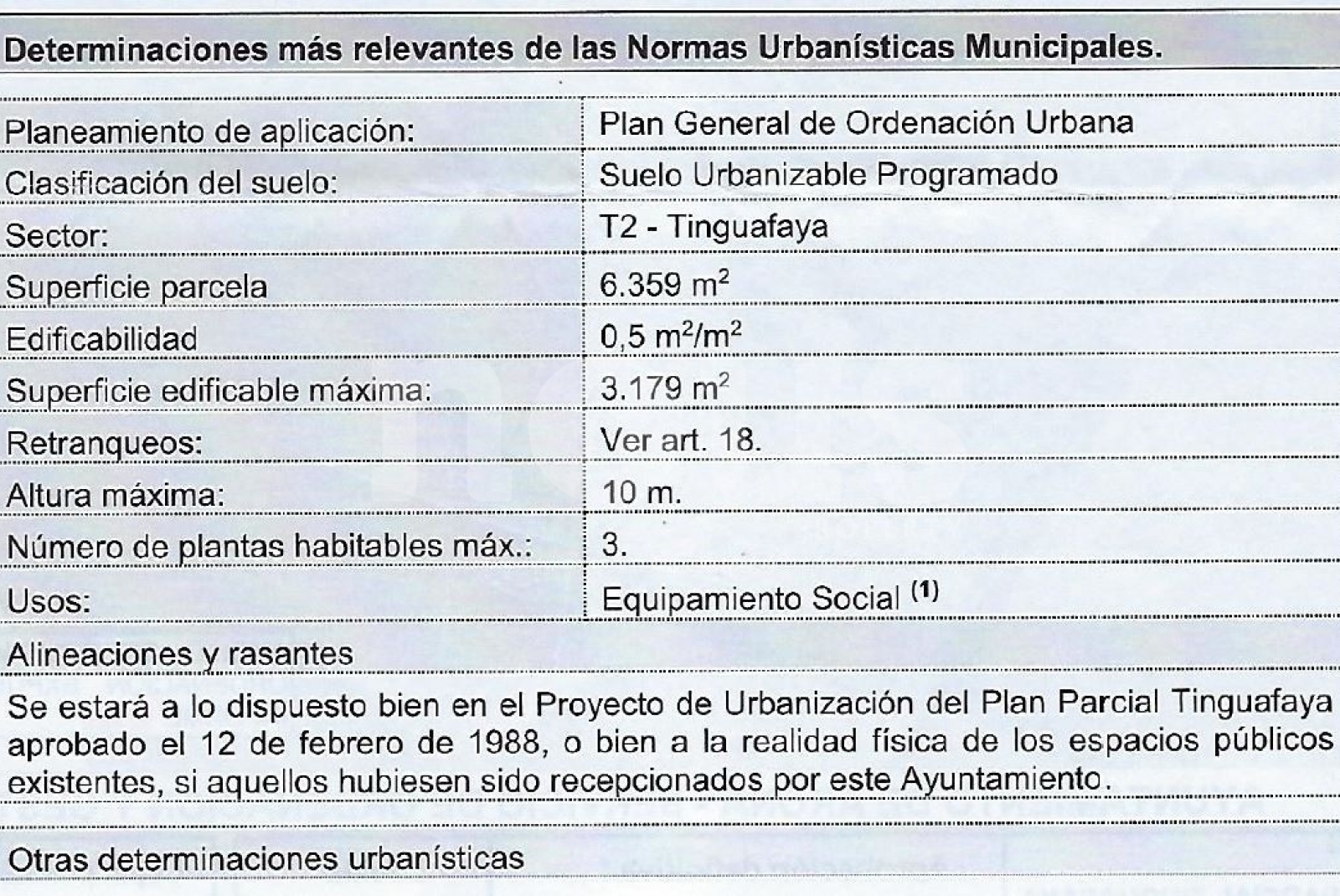 Descripción: Tenemos el placer de presentarles esta espectacular parcela en venta en Chayofa. Con un terreno de 6.359 m2. Con 3.179 m2 de área edificable. Máximo 3 plantas.