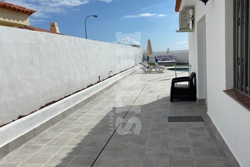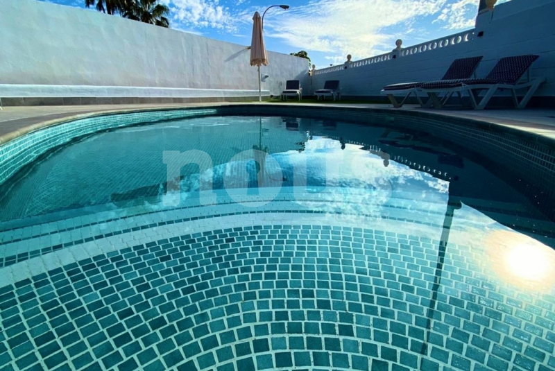 En venta villa completamente reformada en el complejo Sueño Azul, Callao Salvaje. La propiedad cuenta con una parcela de 367 m² y está distribuida en 3 habitaciones, salón comedor y cocina americana. Desde el amplio salón se accede a una gran terraza con vistas al mar, ideal para disfrutar de momentos al aire libre. Dispone de piscina privada y trastero. La villa está totalmente amueblada y equipada, lista para entrar a vivir o para alquilar como vivienda vacacional (VV).