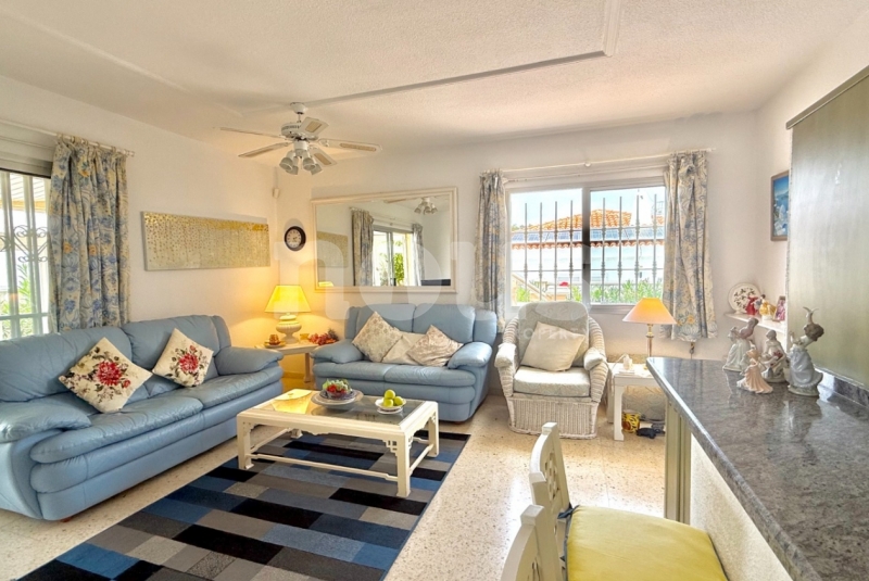 Acogedor bungalow en venta en la exclusiva zona residencial de Sueño Azul, en Callao Salvaje. Situado a escasos metros del mar y a tan solo diez minutos a pie de la Playa de Ajabo, esta propiedad representa una magnífica oportunidad de inversión, ideal tanto como residencia permanente, vivienda vacacional o para destinarla al alquiler turístico.