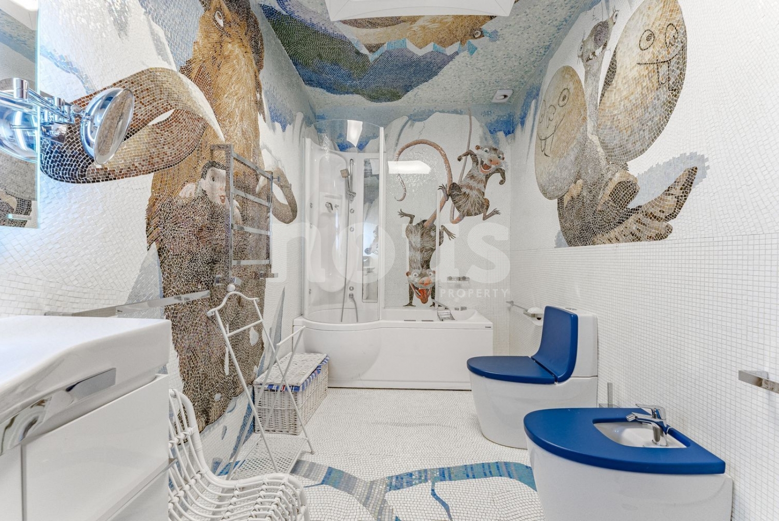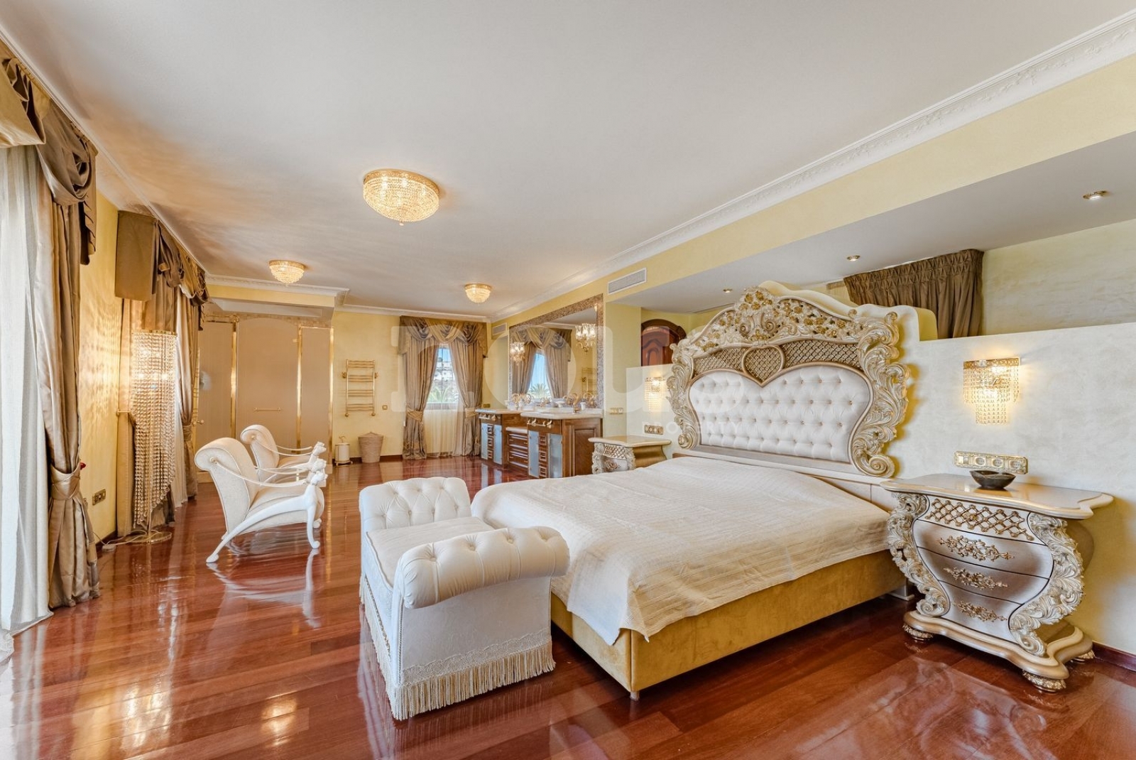 Toda la villa está equipada con ventilación central y aire acondicionado. Entre las instalaciones adicionales se incluyen una cocina independiente de 120 m² con zona de barbacoa, dos apartamentos de invitados de 60 m² cada uno, estacionamiento cubierto para dos coches, cámaras frigoríficas, trasteros y más.