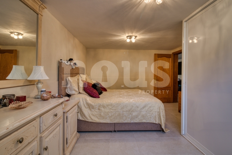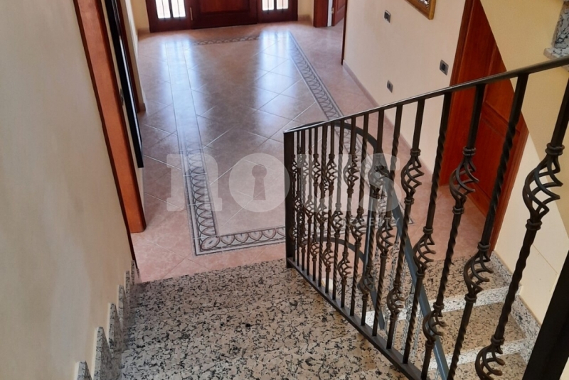 El hall de entrada cuenta con una escalera de mármol que conduce a un salón de 45m2 con zona de comedor, junto a una nueva cocina. Desde el salón, se accede a una gran terraza cubierta con vistas al jardín amurallado. Todas las ventanas y puertas cuentan con soportes de seguridad de hierro.