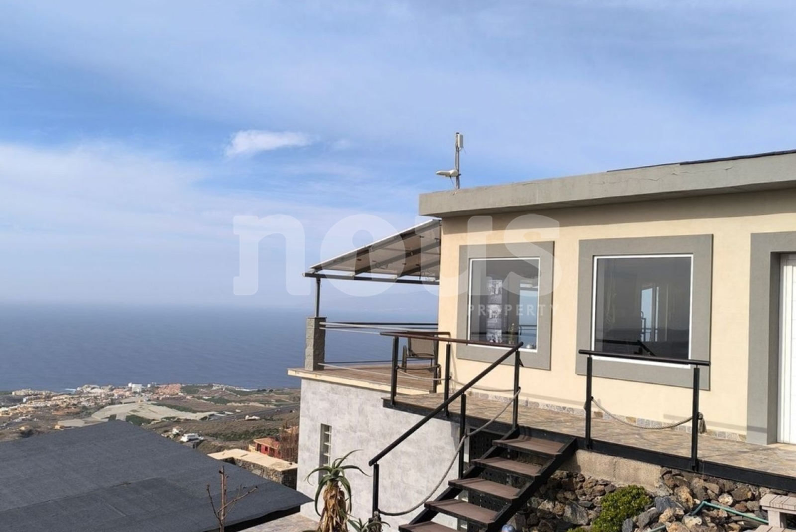Casa moderna con espectaculares vistas. La casa está destrubuida en 2 plantas con accesos independientes. Tiene instalación de paneles solares. En el territorio hay zona de descanso, barbacoa y sauna.