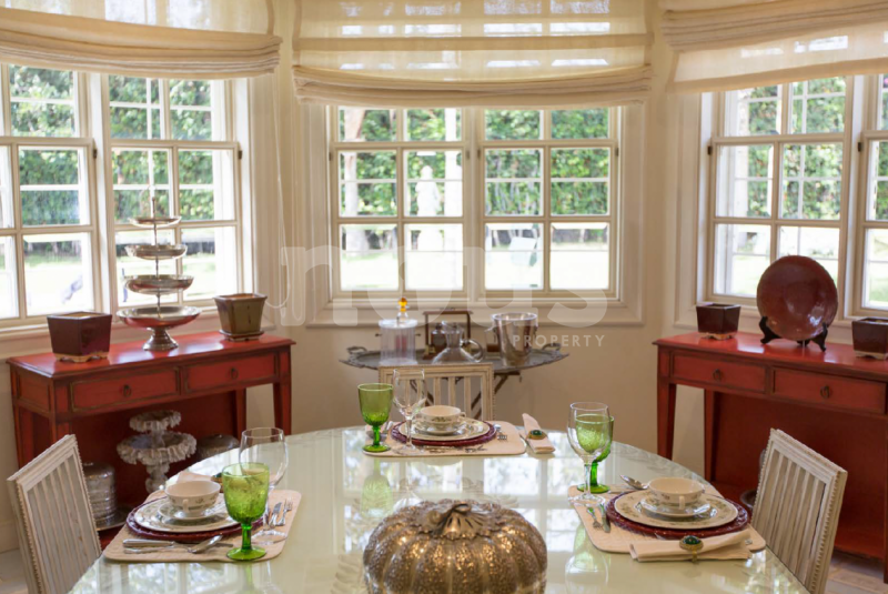 Los espacios sociales son verdaderamente impresionantes, con dos comedores y cuatro salones elegantemente decorados que brindan el escenario ideal para momentos inolvidables con familiares y amigos. Un aseo para invitados garantiza la comodidad de los huéspedes, mientras que la cocina completamente equipada, acompañada de una despensa, ofrece un entorno perfecto para crear delicias culinarias.