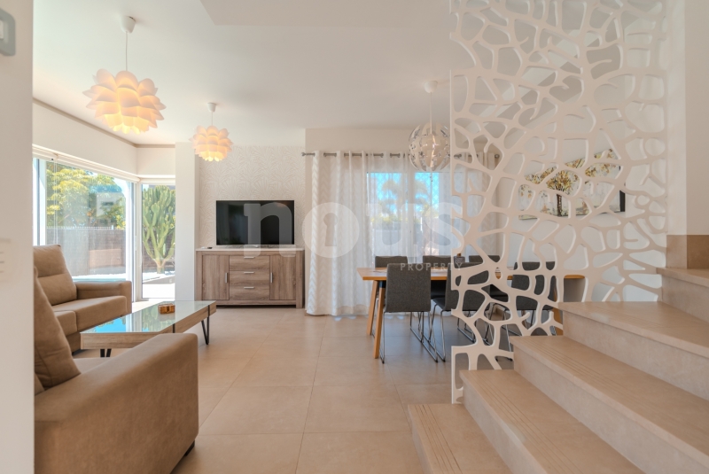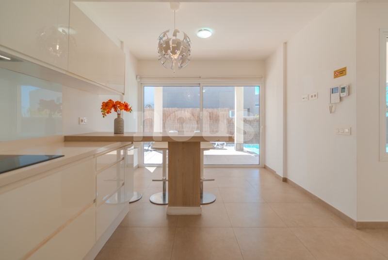 La villa está situada dentro de una urbanización privada y vallada, frente al centro comercial Las Rosas con comercios, bares y restaurantes. La playa de Las Galgas y el Hard Rock Hotel están a 10 minutos caminando.