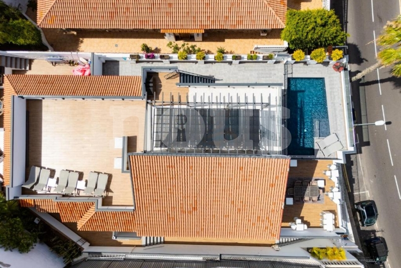 En el exterior, la villa ofrece una piscina privada climatizada rodeada de terrazas y zonas de solárium, una azotea con vistas panorámicas al océano Atlántico y la costa sur, además de varias áreas de comedor al aire libre que invitan a disfrutar de veladas únicas.