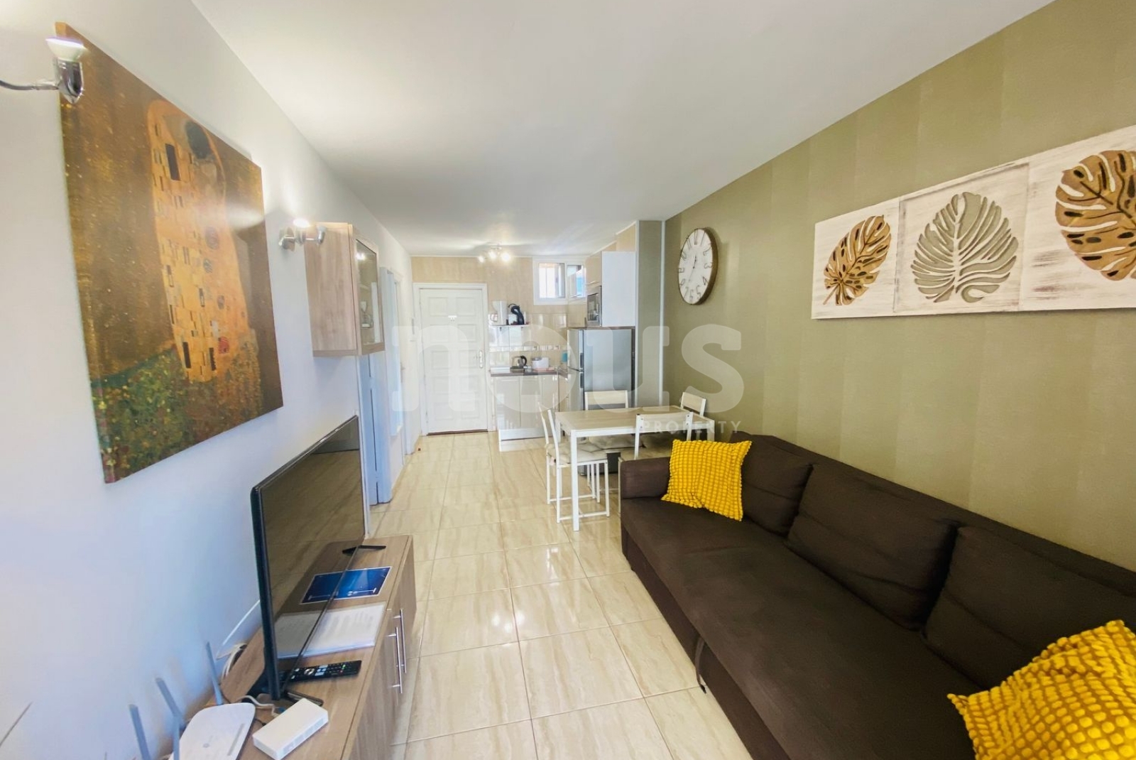 L'appartement, en parfait état, dispose d'une grande chambre avec armoire intégrée et fenêtre donnant sur le jardin, d'une salle de bain avec douche, lave-linge et fenêtre, d'une cuisine américaine moderne entièrement équipée ouverte sur le salon/salle à manger avec un canapé confortable. , transformable en lit, pour vous détendre devant la télévision à écran plat.