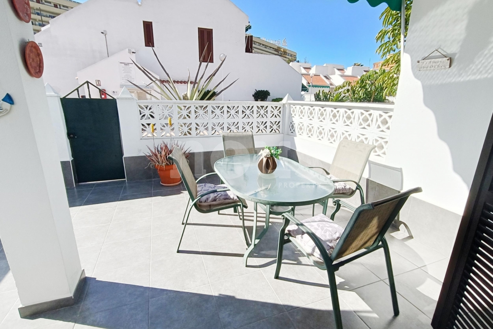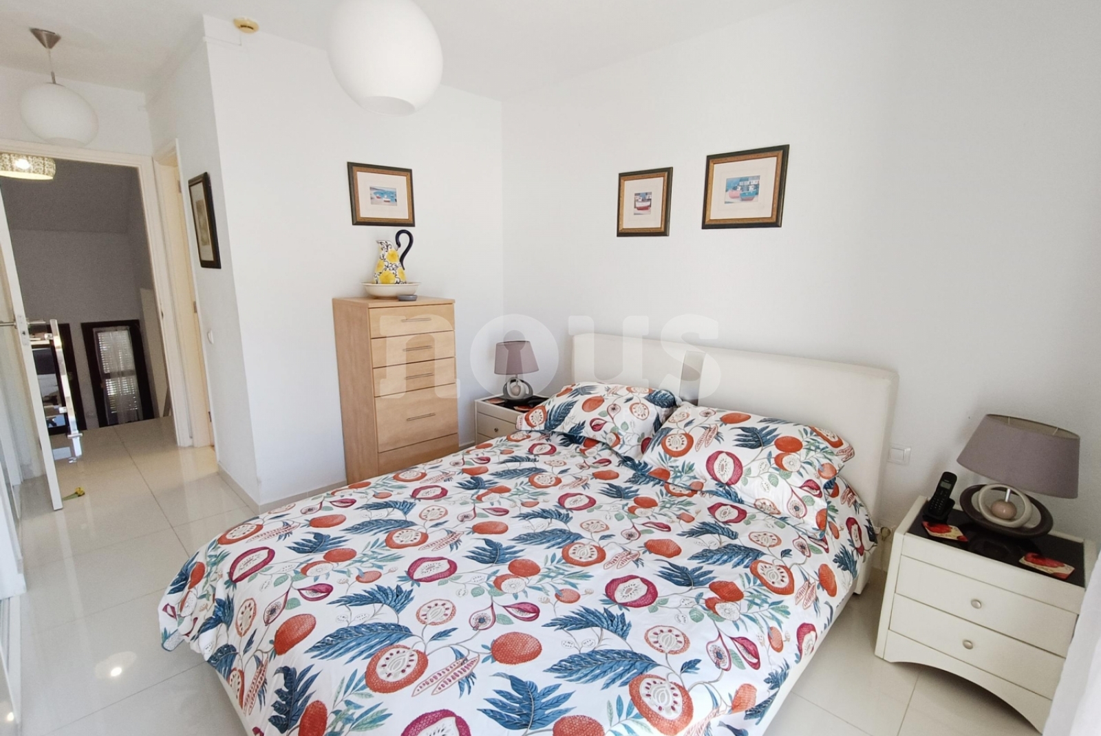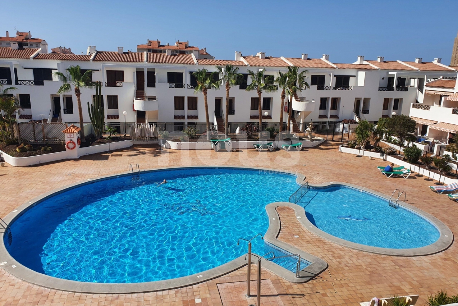 La maison a deux chambres et deux salles de bains, distribuées à deux étages pour une plus grande intimité. Au rez-de-chaussée se trouve une chambre légère à côté du bain des invités, donnant sur le jardin privé de 105 m². À l'étage supérieur, la chambre a une salle de bain et accès à une terrasse privée surplombant la piscine communautaire.