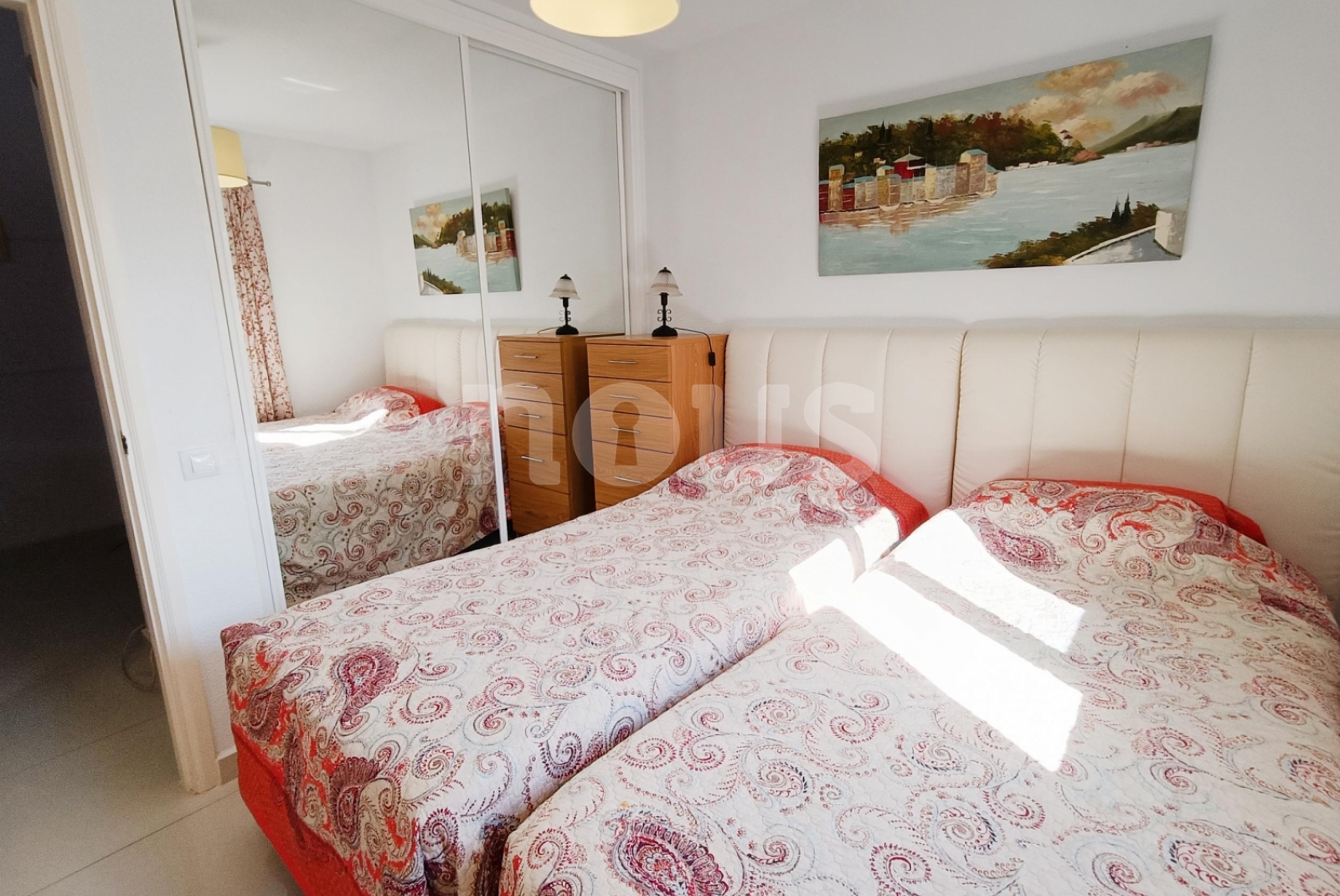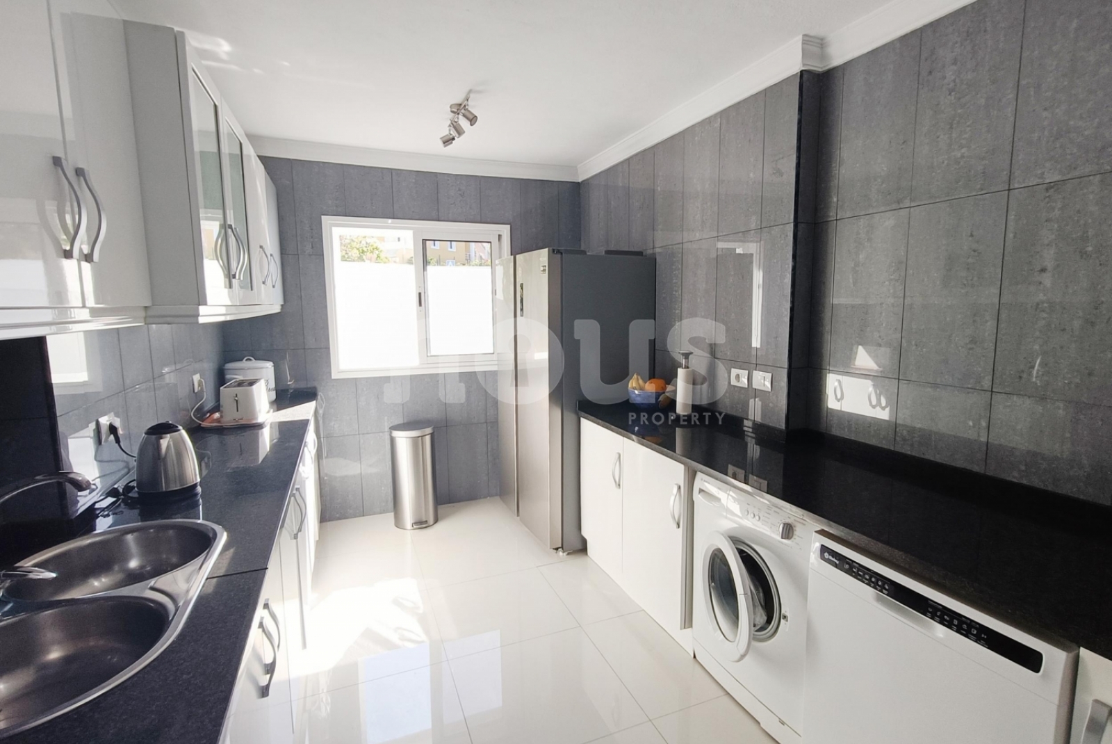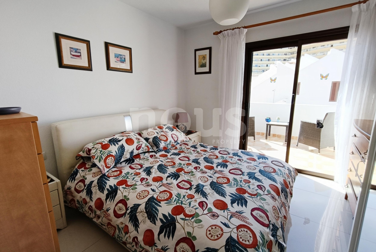 La maison a deux chambres et deux salles de bains, distribuées à deux étages pour une plus grande intimité. Au rez-de-chaussée se trouve une chambre légère à côté du bain des invités, donnant sur le jardin privé de 105 m². À l'étage supérieur, la chambre a une salle de bain et accès à une terrasse privée surplombant la piscine communautaire.