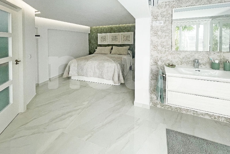 Au rez-de-chaussée, vous trouverez un spacieux salon-salle à manger, une cuisine américaine moderne, 3 chambres (la principale avec dressing), 3 salles de bains (dont une en suite) et un patio ouvert et lumineux avec table et chaises. En montant les escaliers, vous trouverez une petite maison avec 1 chambre, 1 salle de bain et un bureau séparé d'environ 25 m2. À cet étage, il y a une terrasse conçue comme un espace de détente confortable avec un auvent et du mobilier, idéal pour se détendre et profiter du style de vie unique de Tenerife.
