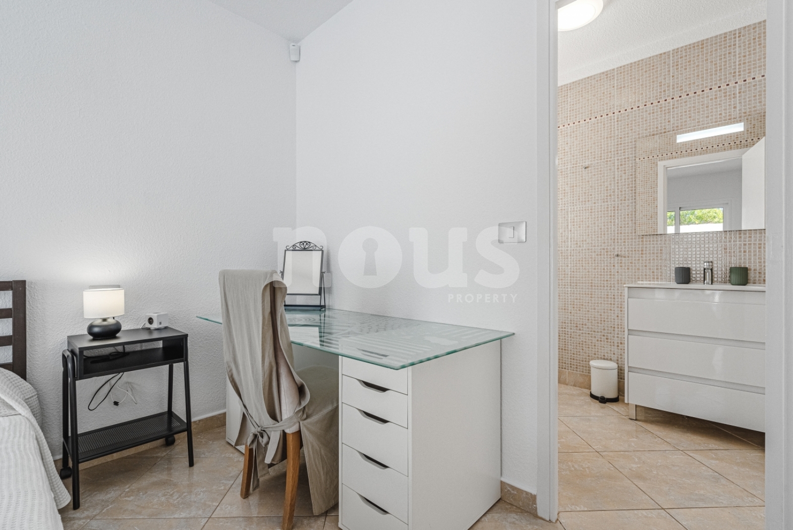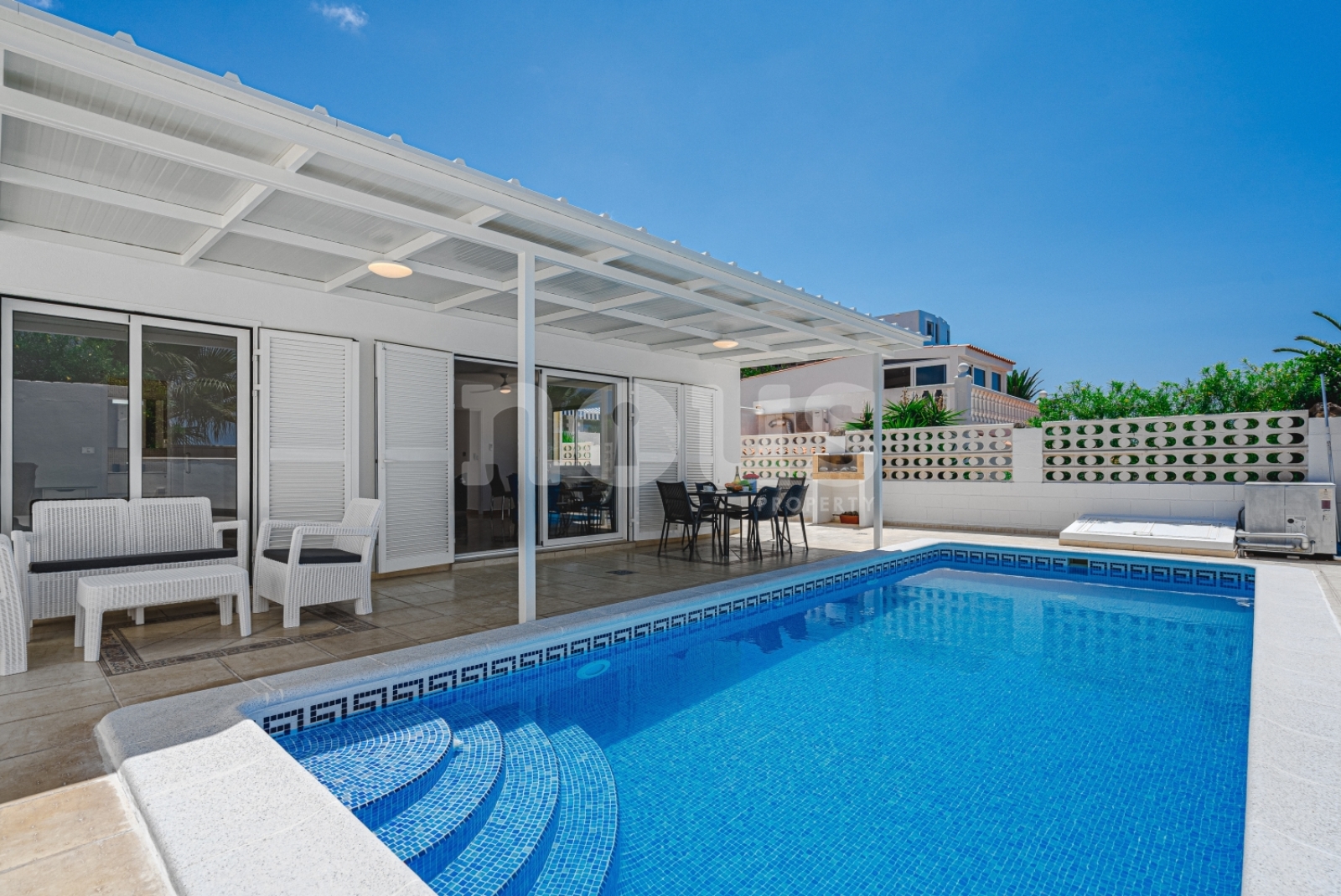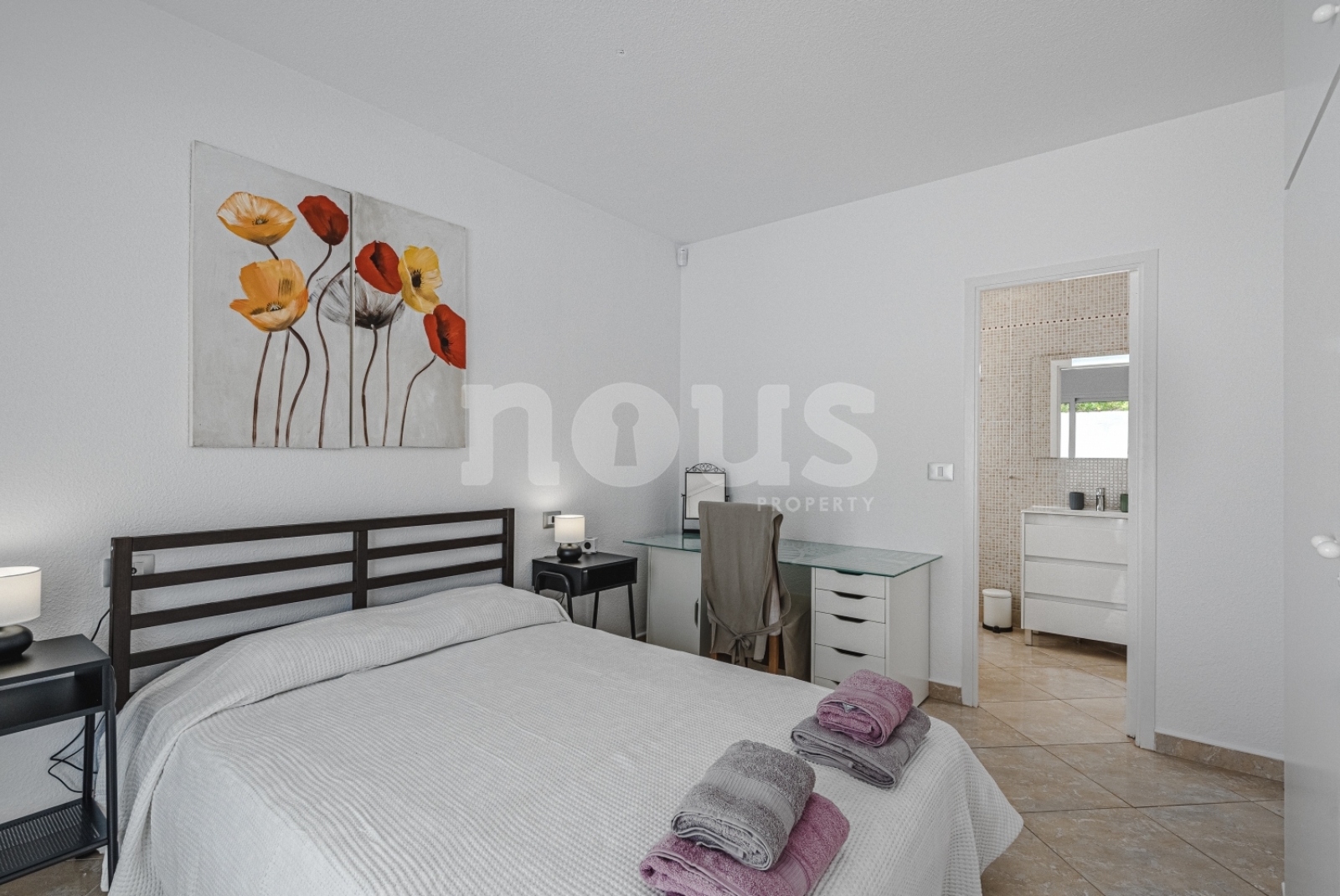Description détaillée : salon spacieux avec table à manger, canapé et TV ; la cuisine, combinée avec le salon, est équipée d'appareils électroménagers : cuisinière, four, bouilloire, grille-pain, micro-ondes, réfrigérateur. Il y a des ustensiles pour cuisiner et manger. Chambre principale avec lit double, bureau et salle de bain en suite avec baignoire. Deuxième chambre avec 2 lits simples. Troisième chambre avec 1 lit simple. Deuxième salle de bain avec douche. Sur le territoire de la rue, il y a une table à manger, un coin salon, des chaises longues, un parasol, un auvent du soleil. Piscine privée chauffée.