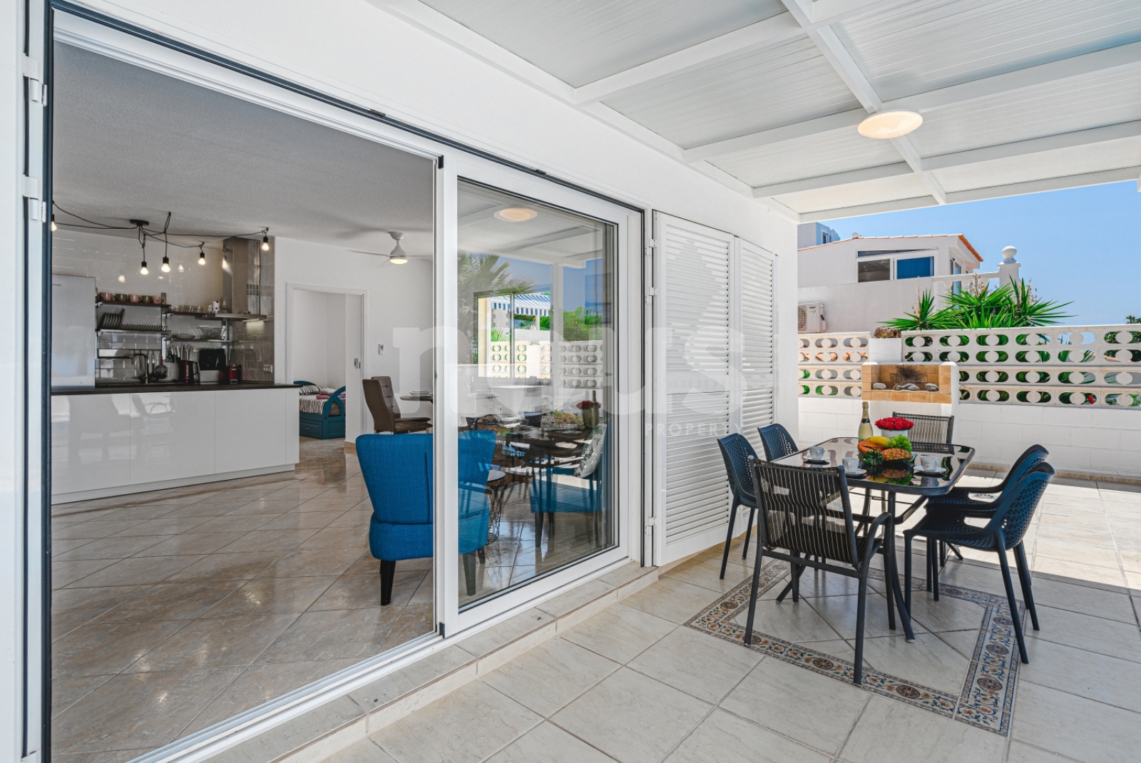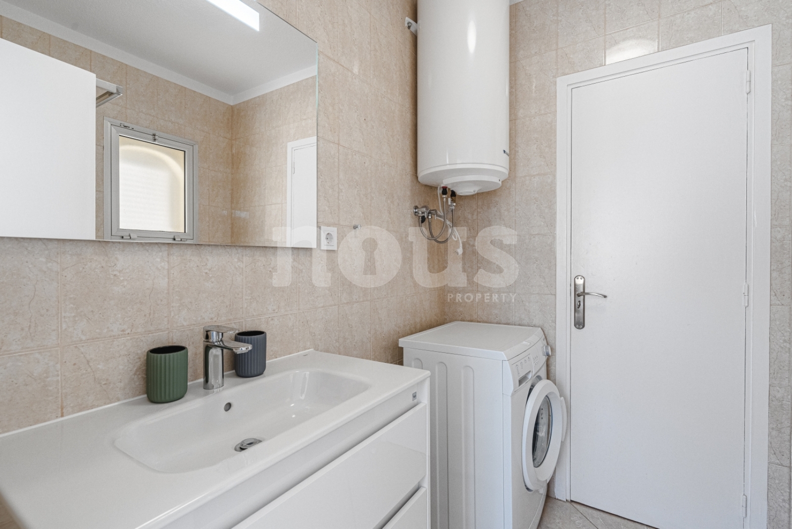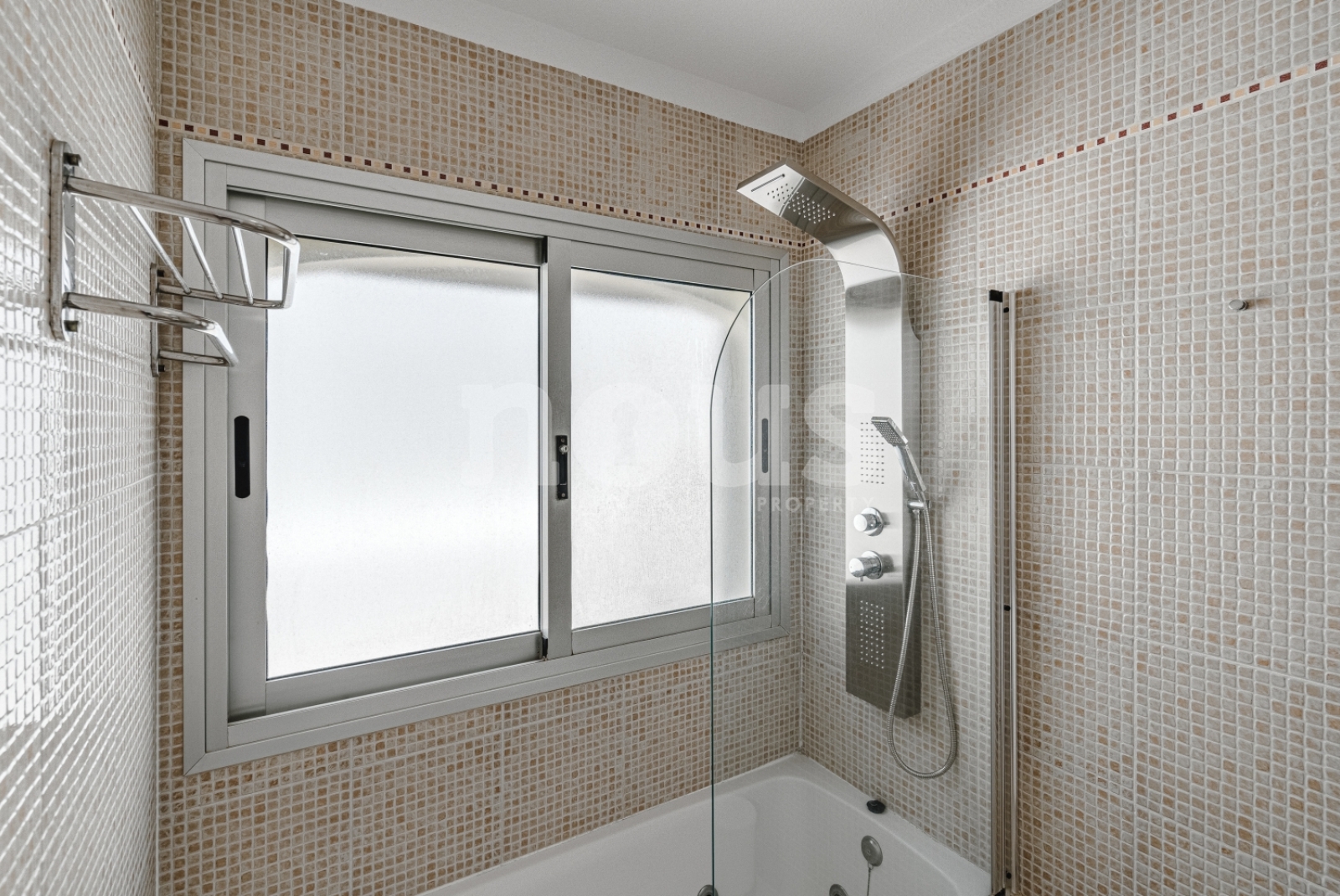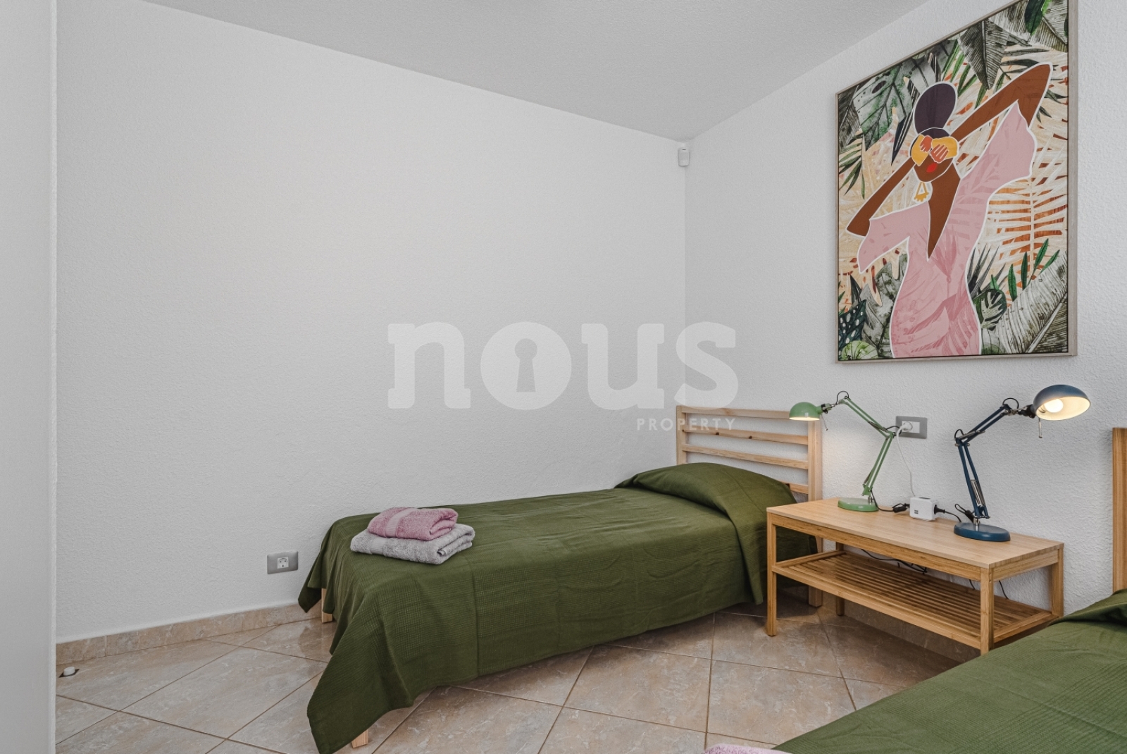 Description détaillée : salon spacieux avec table à manger, canapé et TV ; la cuisine, combinée avec le salon, est équipée d'appareils électroménagers : cuisinière, four, bouilloire, grille-pain, micro-ondes, réfrigérateur. Il y a des ustensiles pour cuisiner et manger. Chambre principale avec lit double, bureau et salle de bain en suite avec baignoire. Deuxième chambre avec 2 lits simples. Troisième chambre avec 1 lit simple. Deuxième salle de bain avec douche. Sur le territoire de la rue, il y a une table à manger, un coin salon, des chaises longues, un parasol, un auvent du soleil. Piscine privée chauffée.