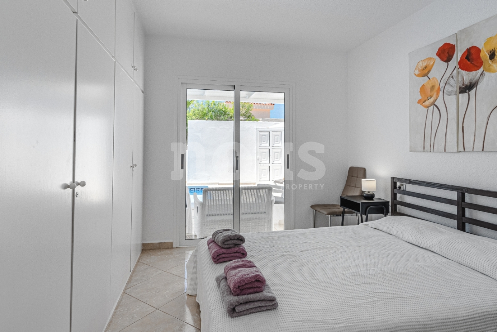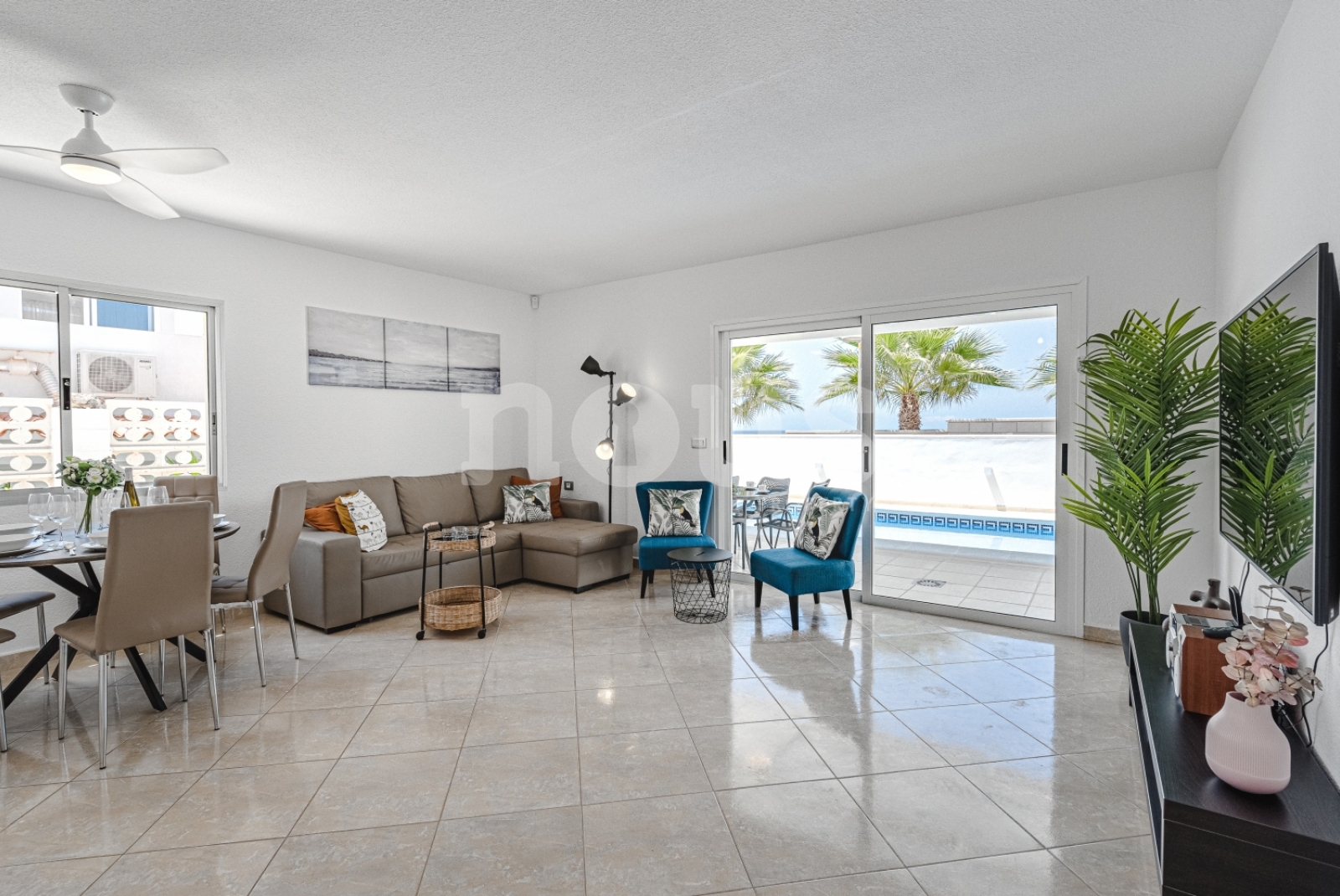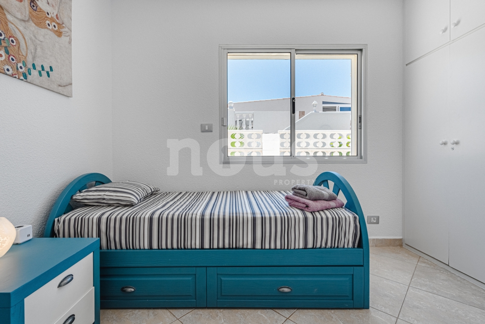 De la villa à la plage la plus proche (Playa de Ajabo) à 500 m ou 6 minutes à pied. La plage est équipée de chaises longues et de parasols. Le supermarché le plus proche HiperDino est à 4 minutes à pied. Il y a un parking commun dans la rue. La grande piscine du Sueño Azul Beach Club, accessible en libre-service, se trouve à 6 minutes à pied. Il y a des courts de tennis près de l'urbanisation. Toutes les infrastructures nécessaires sont accessibles à pied : une plate-forme d'observation, un parc pour enfants, un grand choix de restaurants de cuisine italienne, espagnole, chinoise, canarienne, indienne. Les centres touristiques populaires Playa de Las Americas, Costa Adeje, Playa de Los Cristianos sont à moins de 7 minutes en voiture.