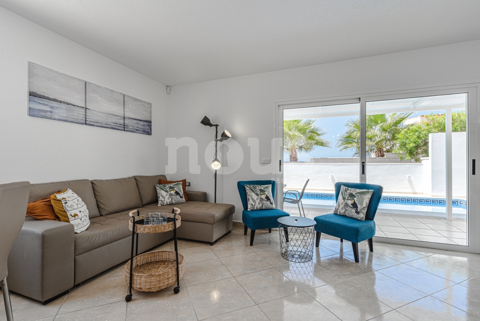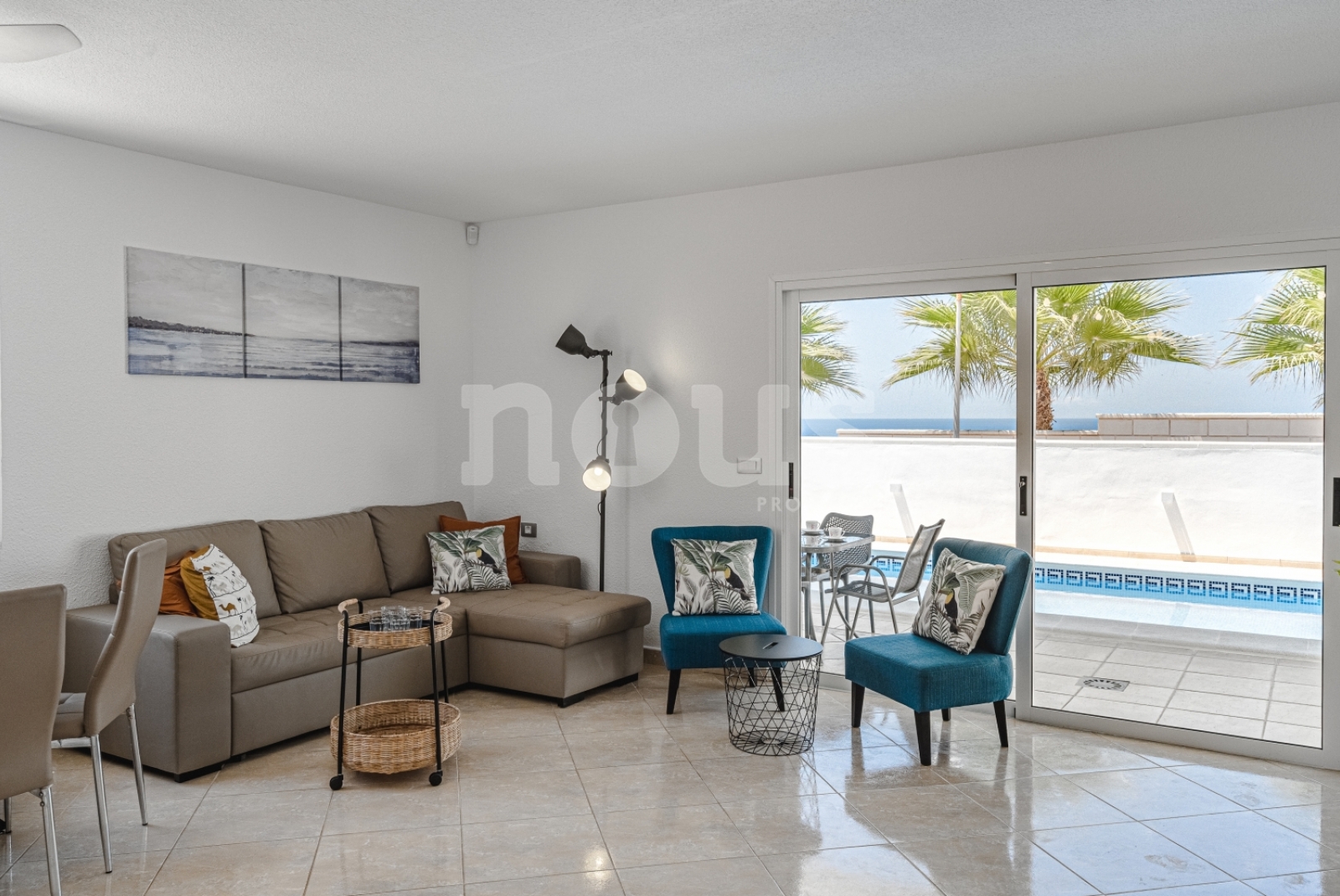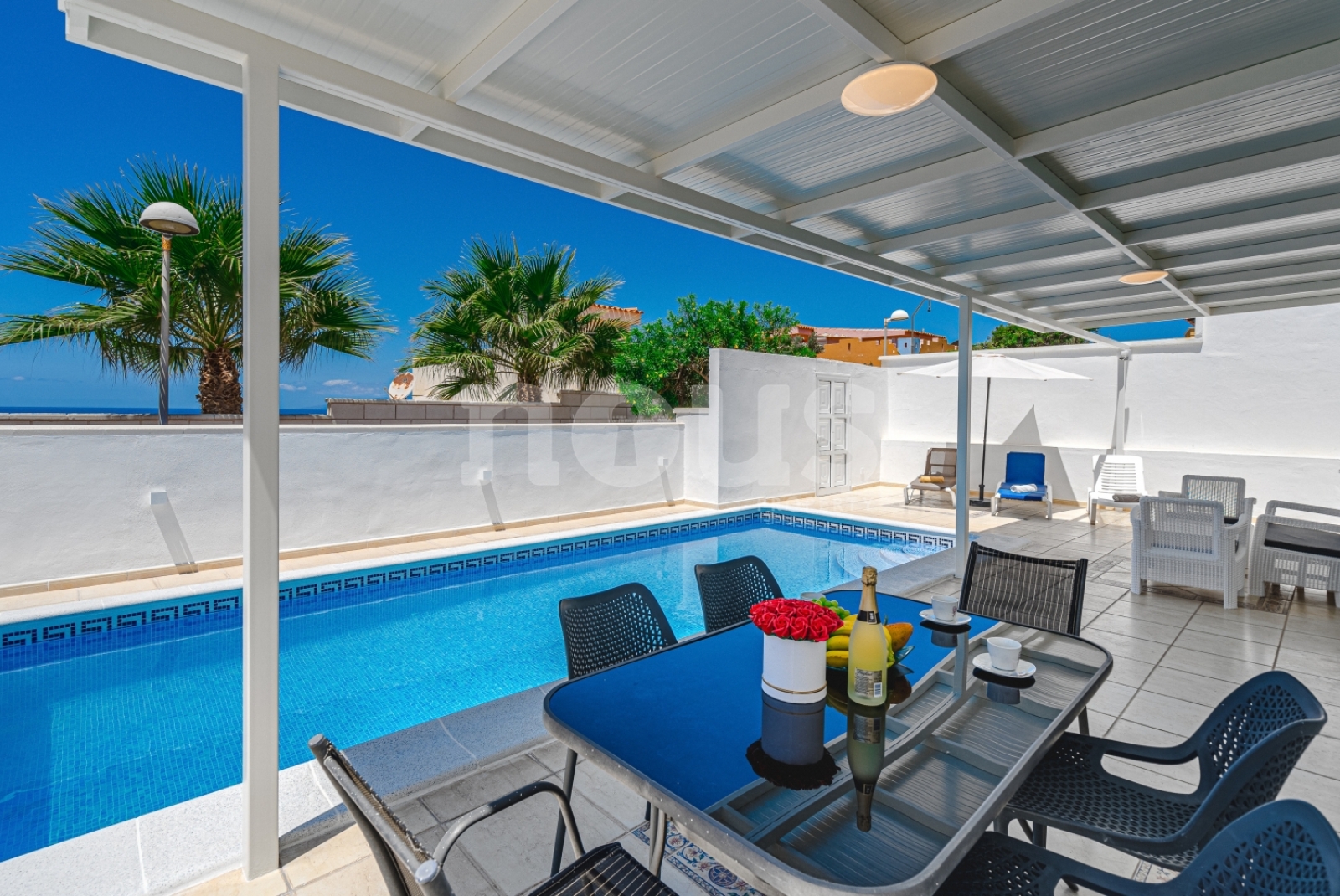 Villa confortable et moderne de plain-pied avec 3 chambres et une piscine privée chauffée, avec une vue imprenable sur l'océan, située dans la paisible ville de Callao Salvaje au sud de Tenerife dans l'urbanisation Sueño Azul. La villa peut accueillir jusqu'à 6 personnes.