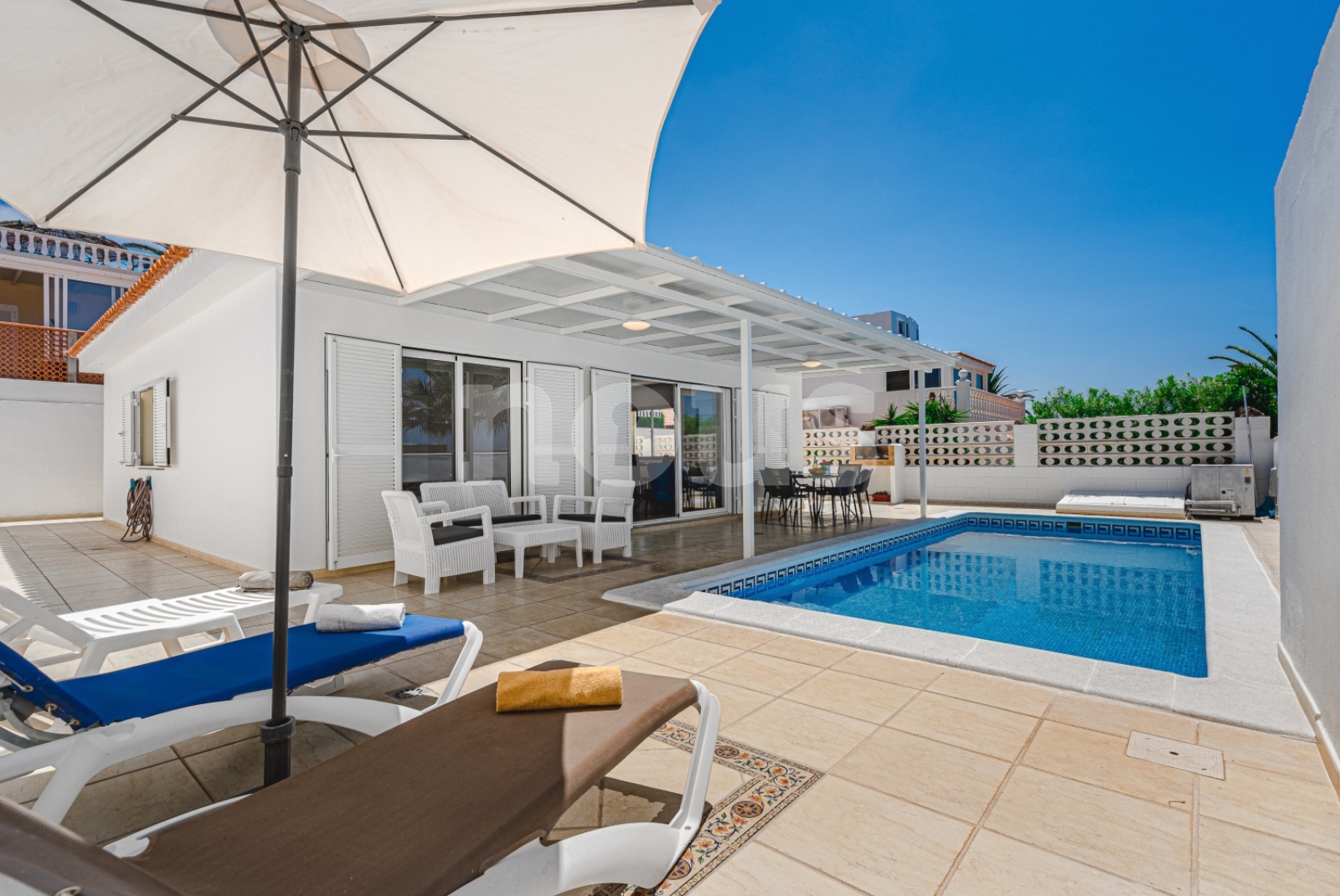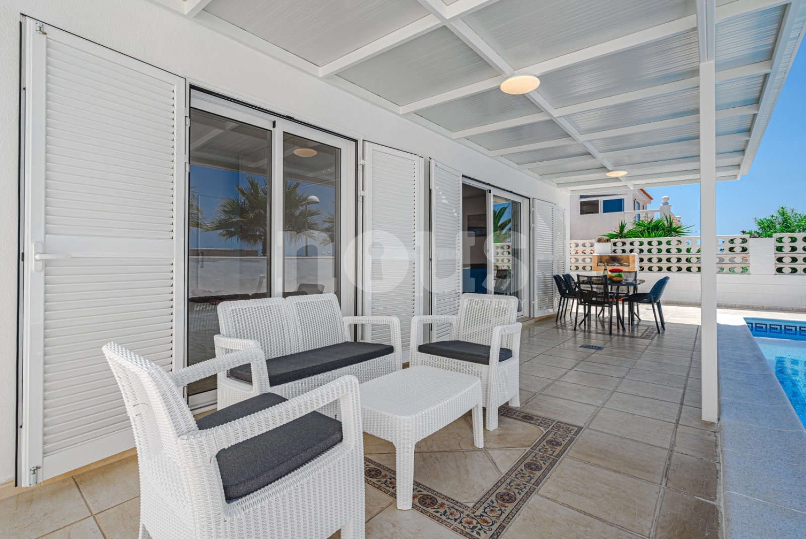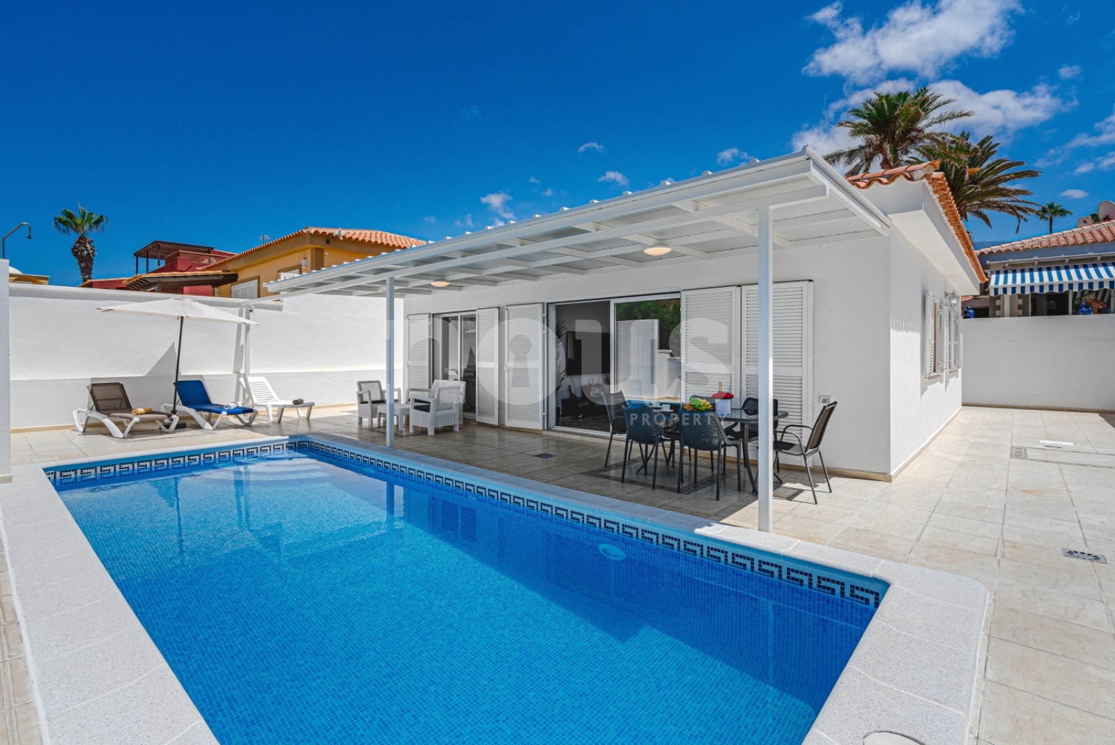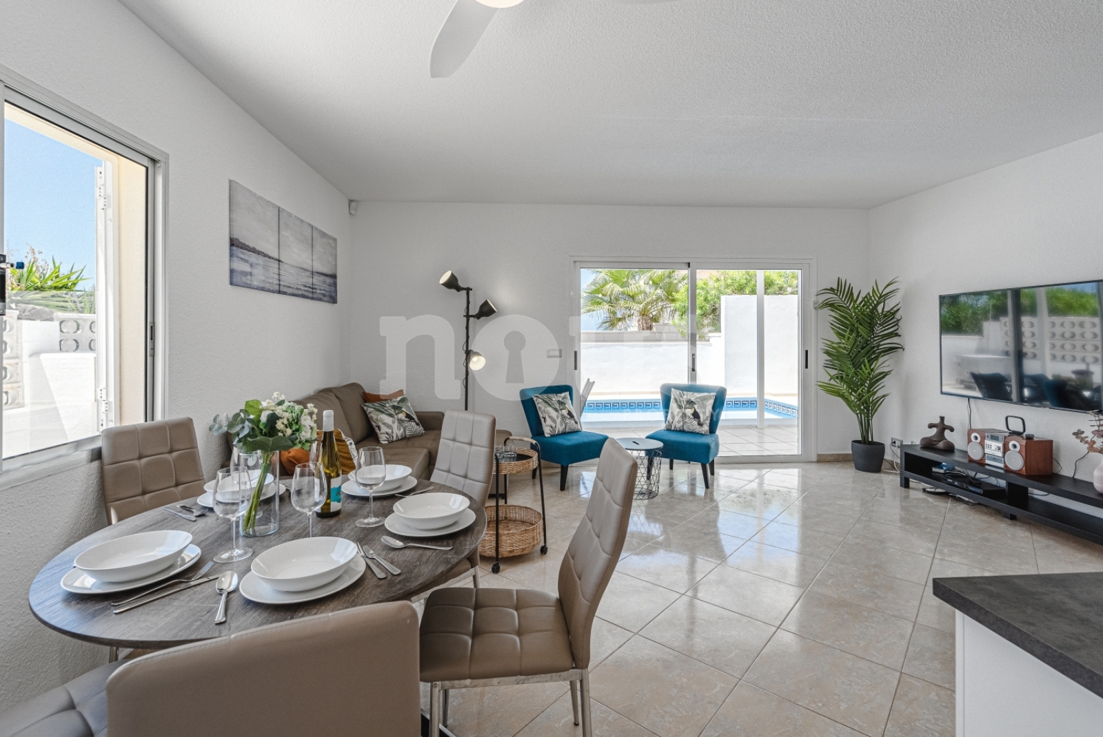 Villa confortable et moderne de plain-pied avec 3 chambres et une piscine privée chauffée, avec une vue imprenable sur l'océan, située dans la paisible ville de Callao Salvaje au sud de Tenerife dans l'urbanisation Sueño Azul. La villa peut accueillir jusqu'à 6 personnes.