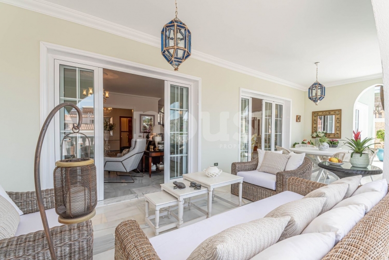 L'étage principal se distingue par son luxueux hall d'entrée, deux salons, une grande salle à manger et une cuisine moderne, le tout avec vue sur la mer et accès à des terrasses partiellement couvertes.