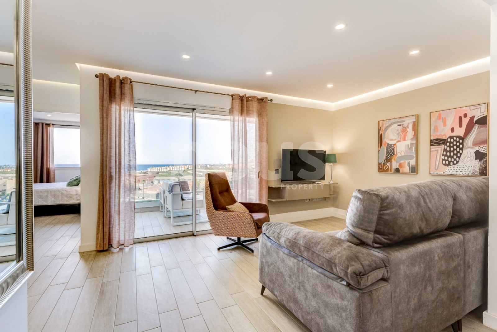 L'appartamento dispone di 3 camere da letto, un ampio soggiorno con angolo cottura, accesso diretto ad una terrazza privata con spettacolare vista sul mare. 2 bagni, terrazza con vista sull'oceano e sulle montagne. Garage sotterraneo compreso nel prezzo.