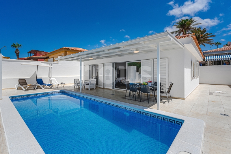 Accogliente e moderna villa a un piano con 3 camere da letto e una piscina privata riscaldata, con splendida vista sull'oceano, situata nella tranquilla cittadina di Callao Salvaje, nel sud di Tenerife, nell'urbanizzazione di Sueño Azul. La villa può ospitare fino a 6 persone.