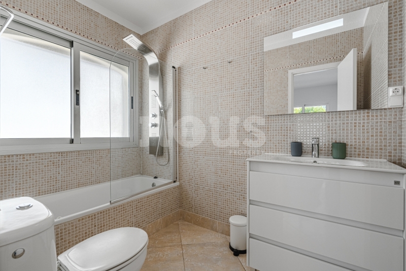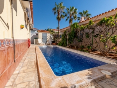 Descrizione dettagliata: ampio soggiorno con tavolo da pranzo, divano e TV; la cucina, abbinata al soggiorno, è dotata di elettrodomestici: piano cottura, forno, bollitore, tostapane, microonde, frigorifero. Ci sono utensili per cucinare e mangiare. Camera matrimoniale con letto matrimoniale, scrivania e bagno privato con vasca. Seconda camera con 2 letti singoli. Terza camera con 1 letto singolo. Secondo bagno con doccia. Sul territorio sulla strada c'è un tavolo da pranzo, un salottino, lettini prendisole, un ombrellone, una tettoia dal sole. Piscina privata riscaldata.