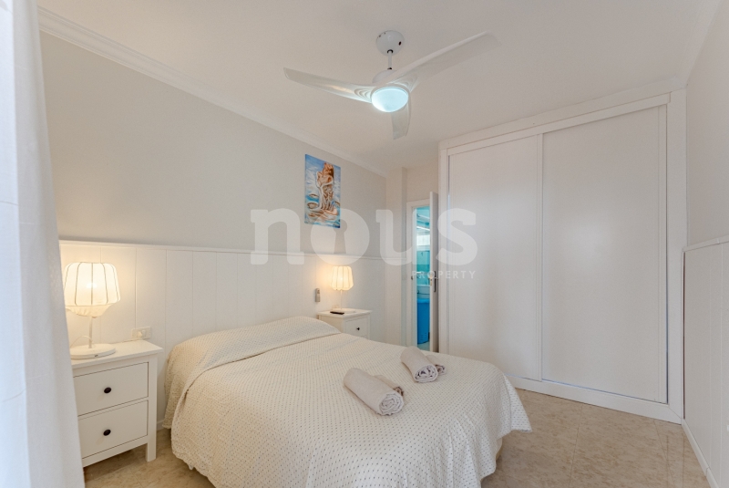 Gedetailleerde omschrijving van het appartement: ouderslaapkamer met tweepersoonsbed, kleerkast, tv en eigen badkamer met douche, tweede slaapkamer met eenpersoonsbed, tweede badkamer met douche, keuken gecombineerd met woonkamer, voorzien van huishoudelijke apparaten: fornuis, oven, waterkoker , broodrooster, magnetron, koelkast. Er zijn keukengerei om te koken en te eten. De woonkamer heeft een slaapbank, tv. Overdekt terras met slaapbank en eettafel met uitzicht op de oceaan.