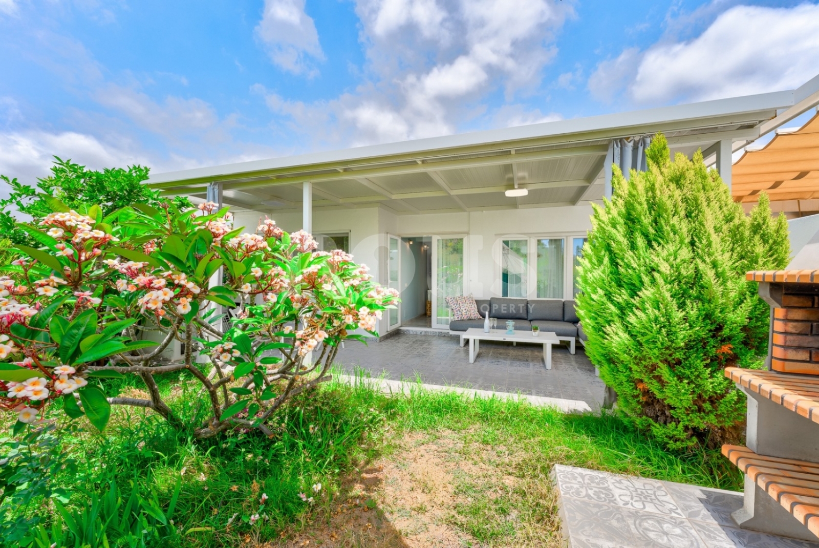 Uitgebreide omschrijving van de bungalow: ouderslaapkamer met een tweepersoonsbed en eigen badkamer met ruime douche, tweede slaapkamer met 2 eenpersoonsbedden en een bureau, een apart toilet met wastafel, een keuken gecombineerd met een woonkamer, voorzien van inbouwapparatuur: fornuis, oven, waterkoker, broodrooster, magnetron, koelkast. Er zijn gebruiksvoorwerpen om te koken en te eten. De woonkamer heeft een eettafel, een bank, een tv. Een terras met een tafel en een zithoek verandert in een grote binnenplaats met een eigen tuin, een barbecue, een zandbak voor de kinderen.