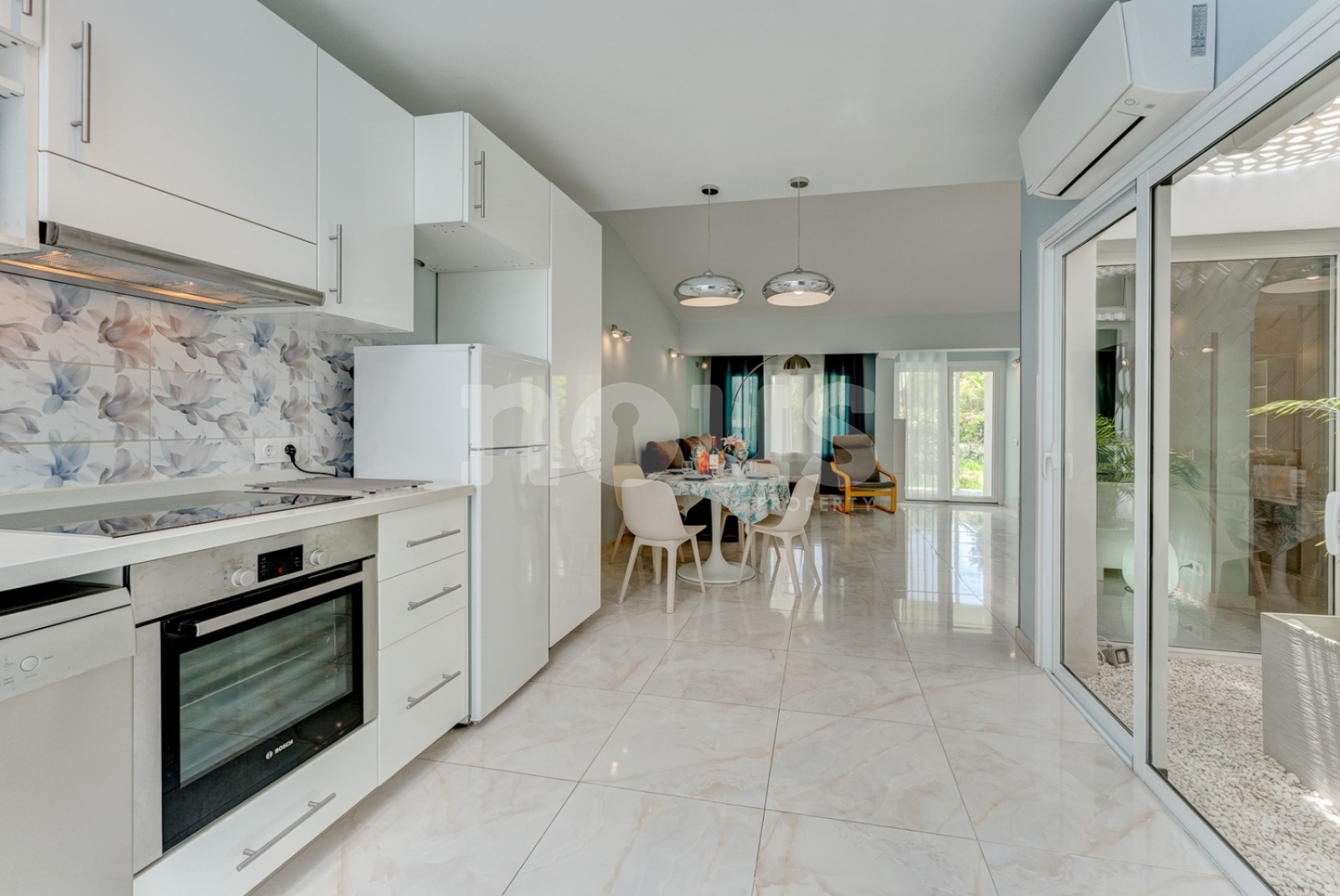 De bungalow is uitgerust met: gratis wifi, tv met internationale zenders, wasmachine, vaatwasser, föhn, strijkijzer en strijkplank, beddengoed en handdoeken, stofzuiger. In aanwezigheid van de dingen die voor de eerste keer nodig zijn: wasmiddel, afwasmiddel, spons, zeep, toiletpapier, shampoo, douchegel, papieren handdoeken. Voor gasten met kinderen worden op verzoek en tegen een toeslag kinderspullen verstrekt: een wieg, een stoel om te eten. De bungalow is rookvrij, roken is alleen toegestaan op het terras.
