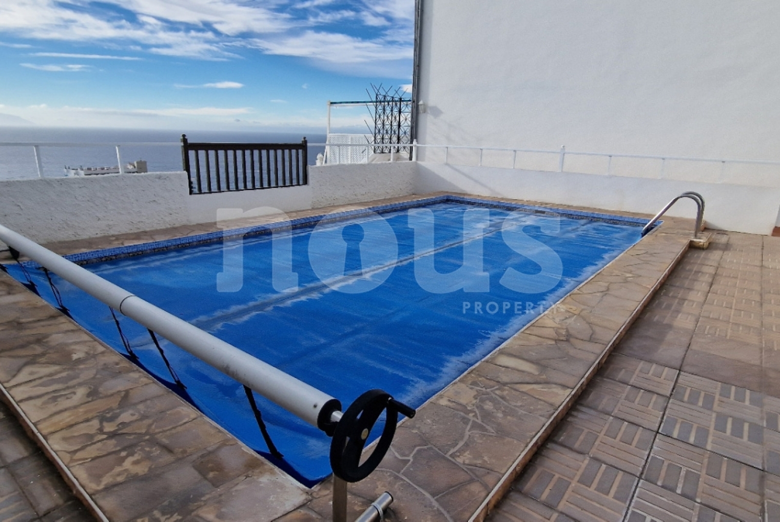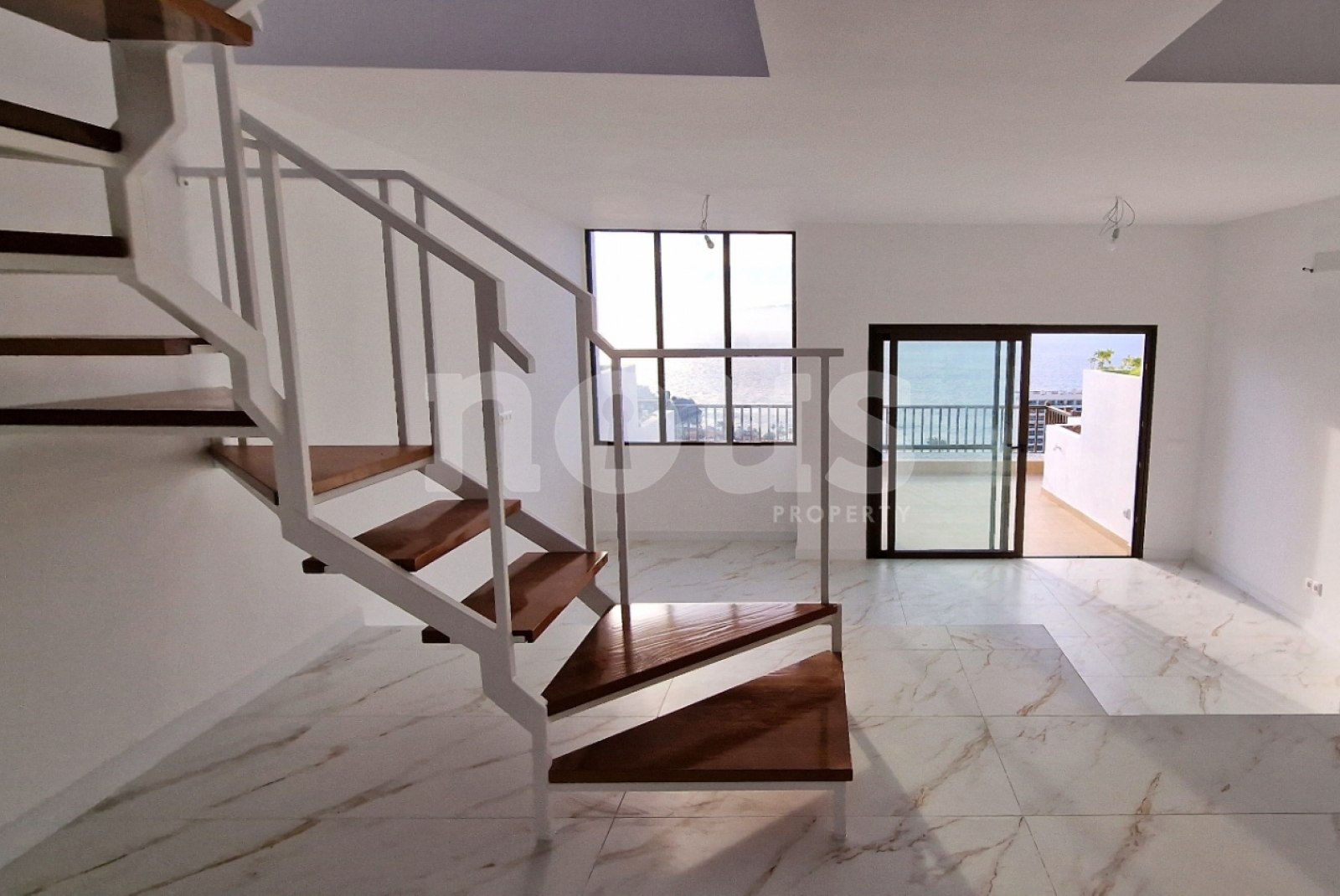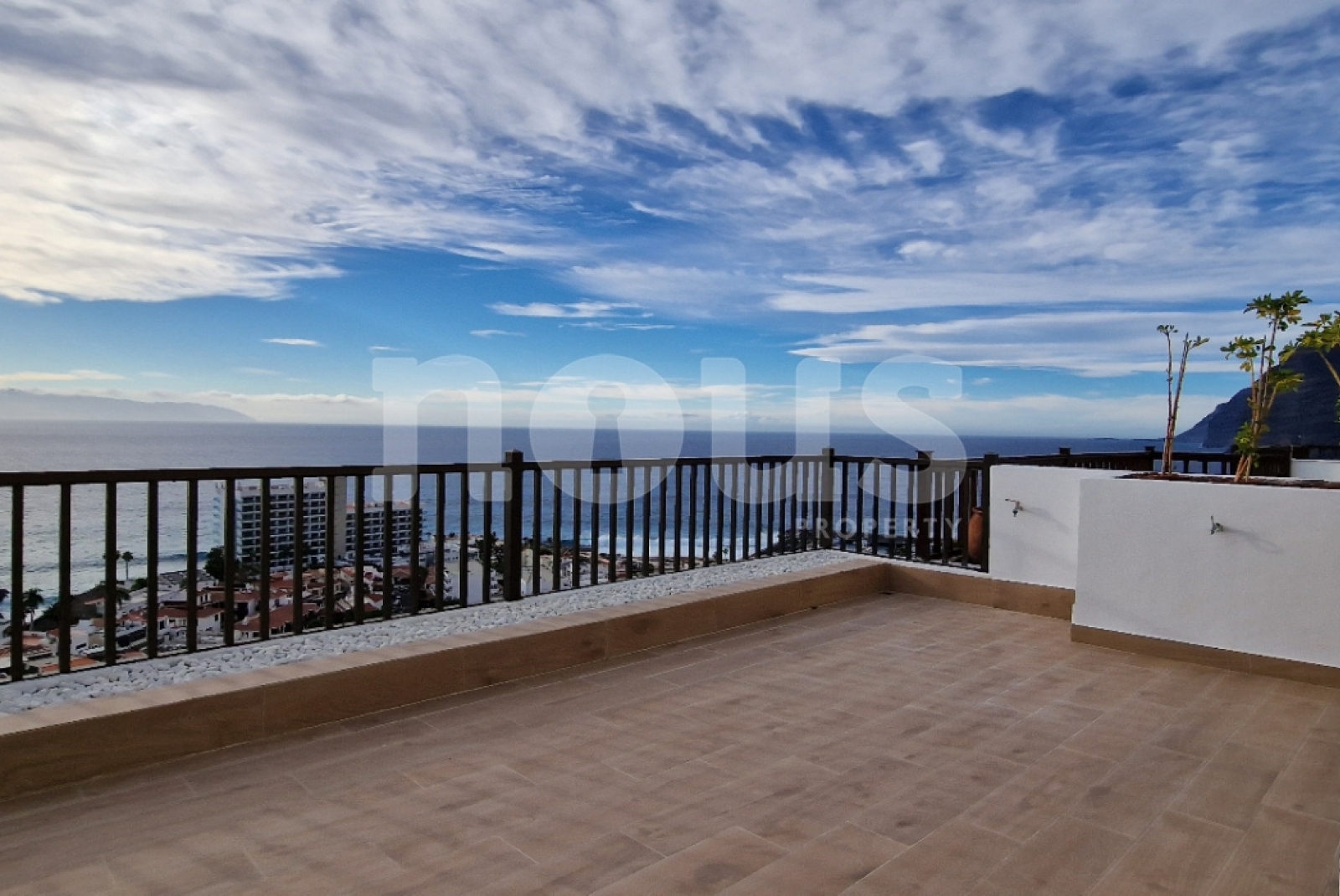 We zijn verheugd om deze prachtige duplex op een van de beste locaties in Los Gigantes te presenteren. Dit pand is volledig gerenoveerd, inclusief een hoogwaardige keuken met moderne apparatuur, en de gehele woning is gerenoveerd met moderne witte kleuren. Bij binnenkomst van de woning vindt u aan uw rechterhand een badkamer met douche. Als u verder naar binnen gaat, vindt u aan de rechterkant de keuken en aan uw linkerkant de trap naar de bovenverdieping. Vanuit de keuken gaan we een paar treden naar beneden en bereiken de woonkamer en eetkamer. Deze lichte ruimte is voorzien van grote ramen en glazen schuifdeuren die toegang geven tot een fantastisch terras. Vanaf het terras, met 49m2, kunt u genieten van een panoramisch uitzicht op Los Gigantes, de Atlantische Oceaan en de naburige eilanden. Het is de perfecte plek om samen te komen met familie en vrienden, met ruimte voor een eettafel, zitbanken en ligstoelen.
