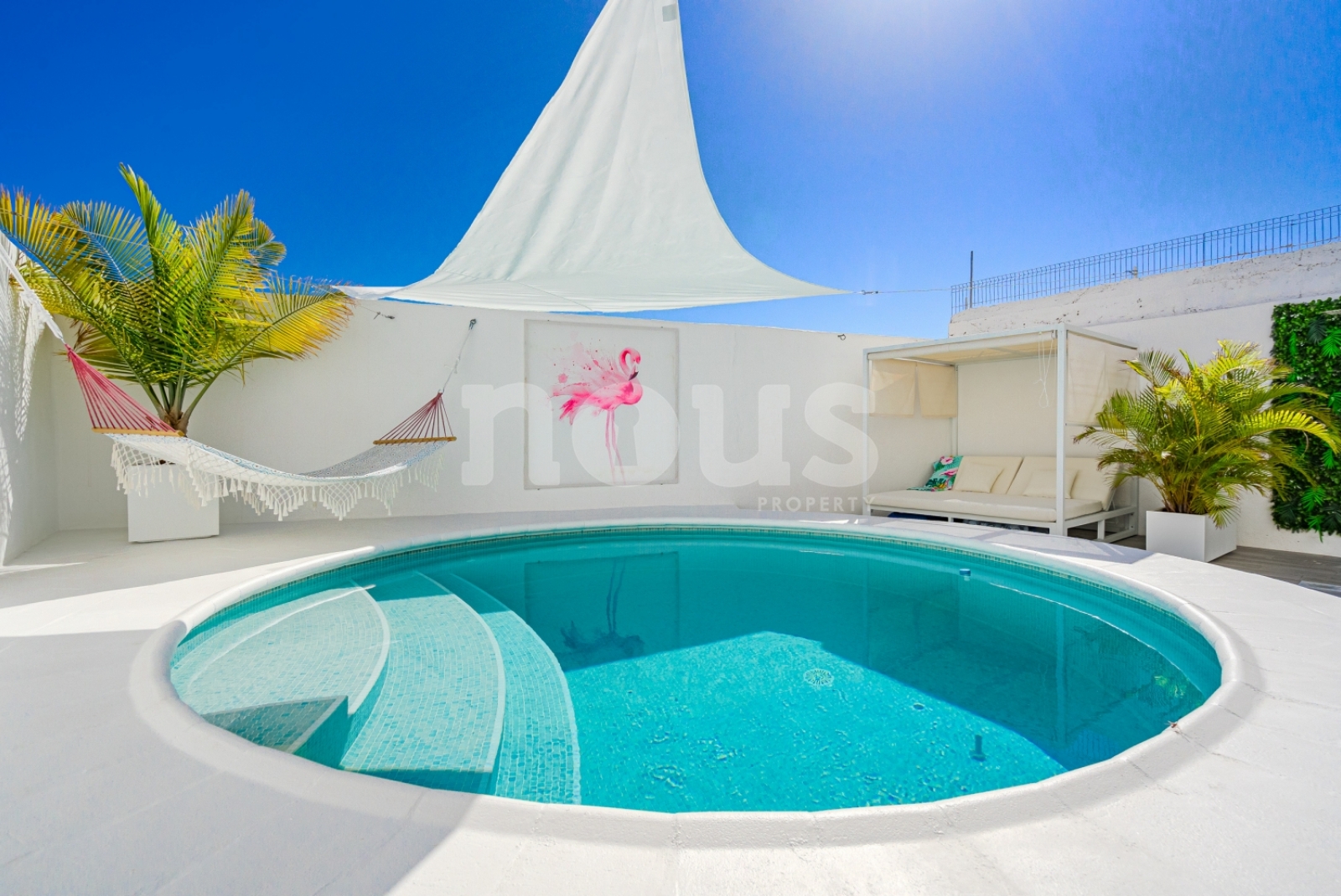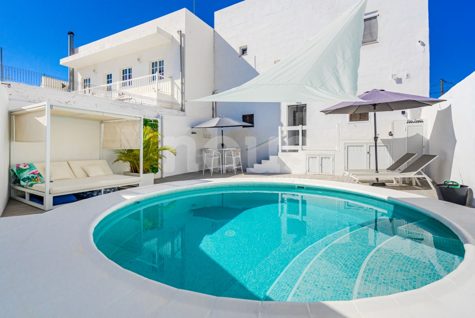 Het huis is volledig ingericht en klaar om te leven. Het heeft een zwembad omgeven door een gezellig terras met sloten en woonkamer. Bovendien biedt het dak een breed terras met een panoramisch uitzicht op de hele kust.