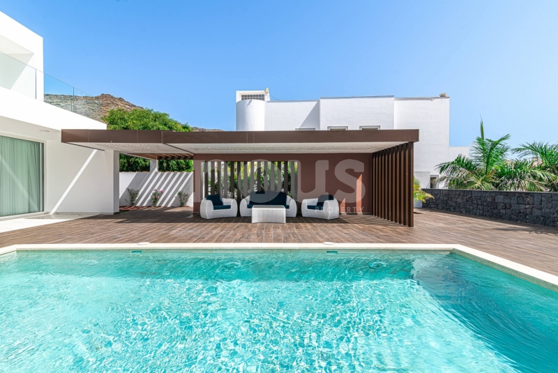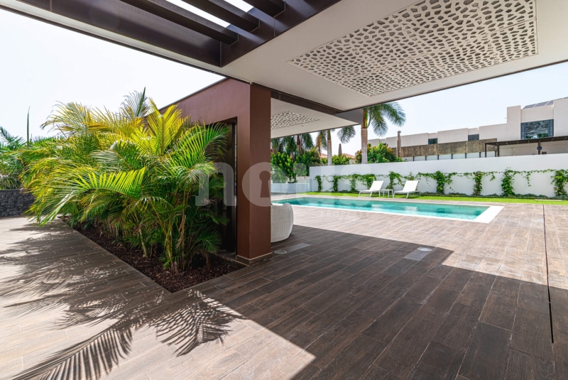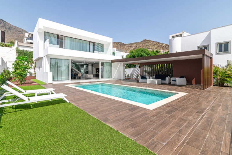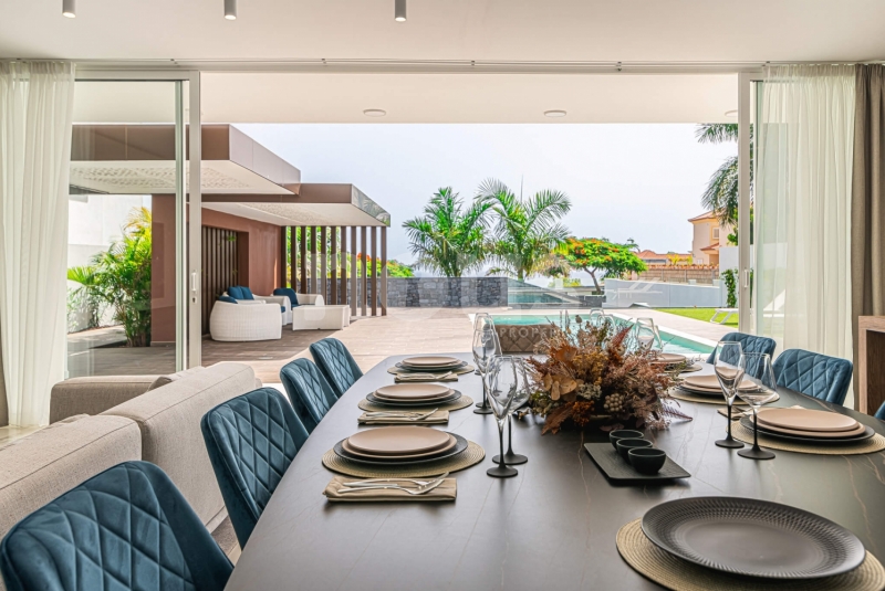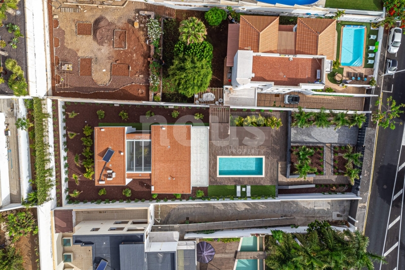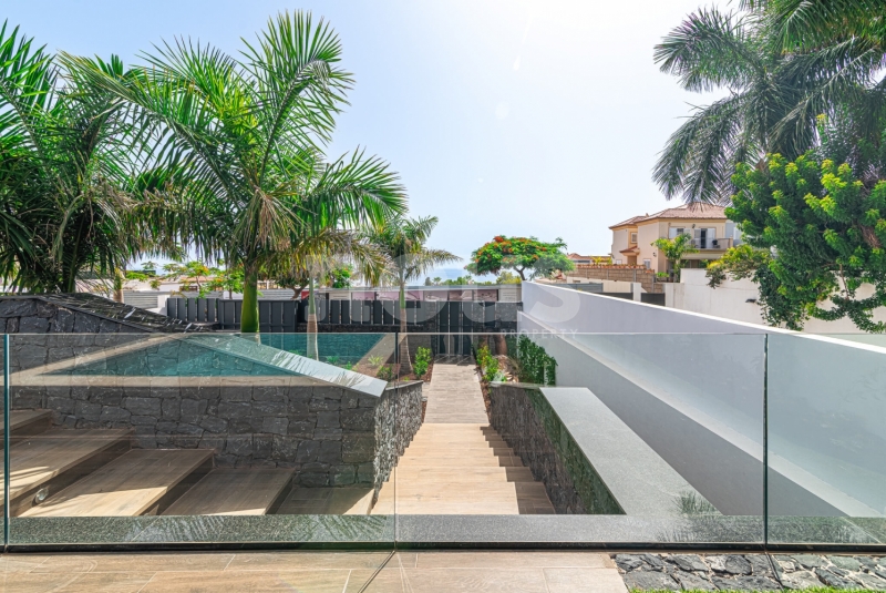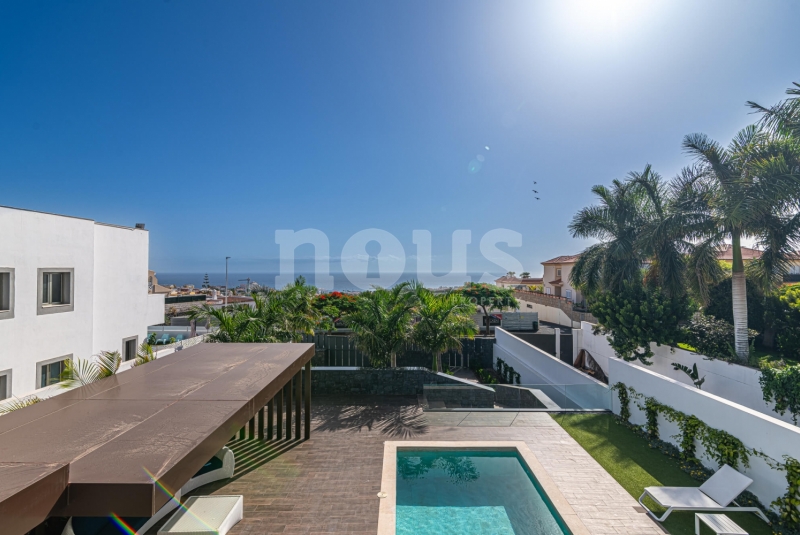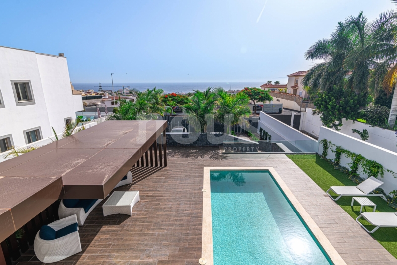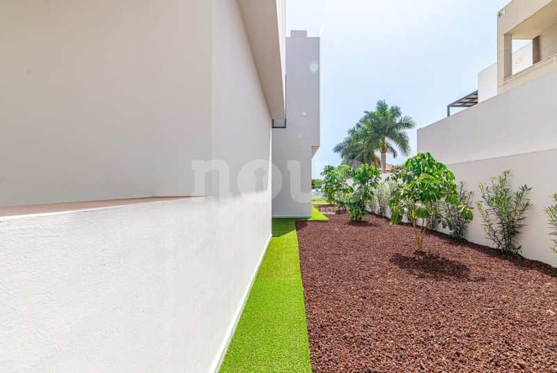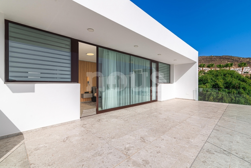 Met genoegen presenteren wij Olivina, een spectaculaire vrijstaande villa in El Madroñal, Adeje, Tenerife. Deze indrukwekkende woning van twee verdiepingen, met 5 slaapkamers en 4 badkamers, combineert hedendaagse architectuur met strakke lijnen en duidelijke fronten, die het moderne leven in een droomachtige omgeving vertegenwoordigen. Villa Olivina biedt een luxe ervaring op het hoogste niveau, dankzij het lichte en comfortabele interieur.